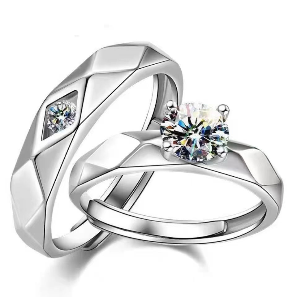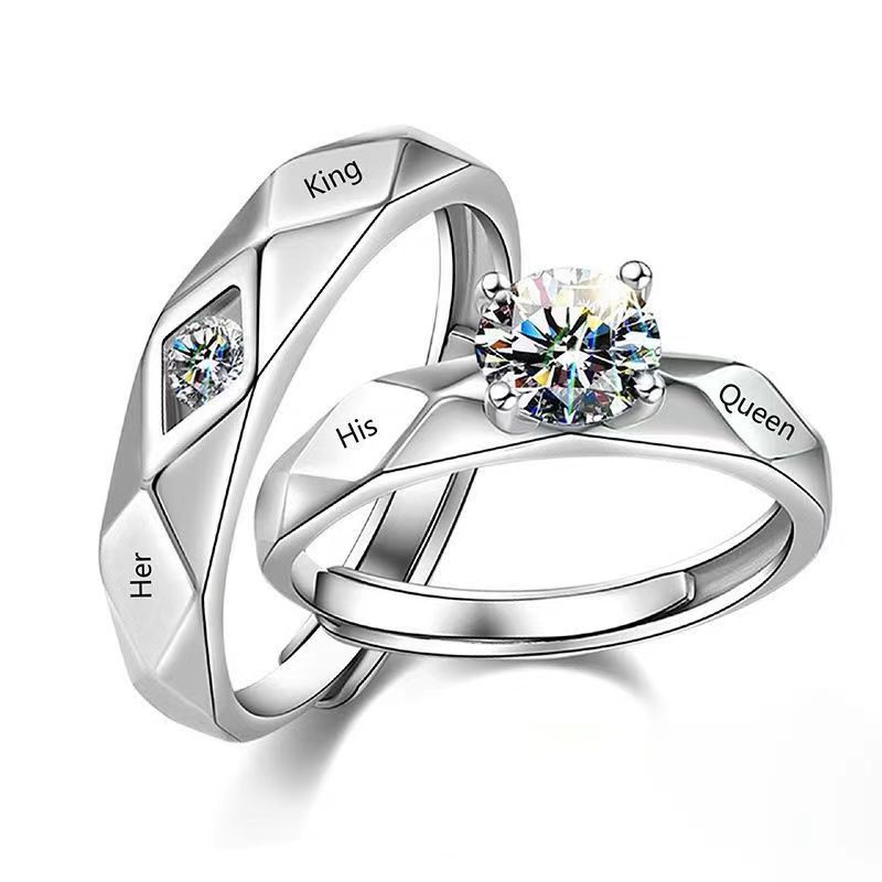 跨境爆款镀白金男女情侣戒指批发饰品Her King His queen情侣对戒