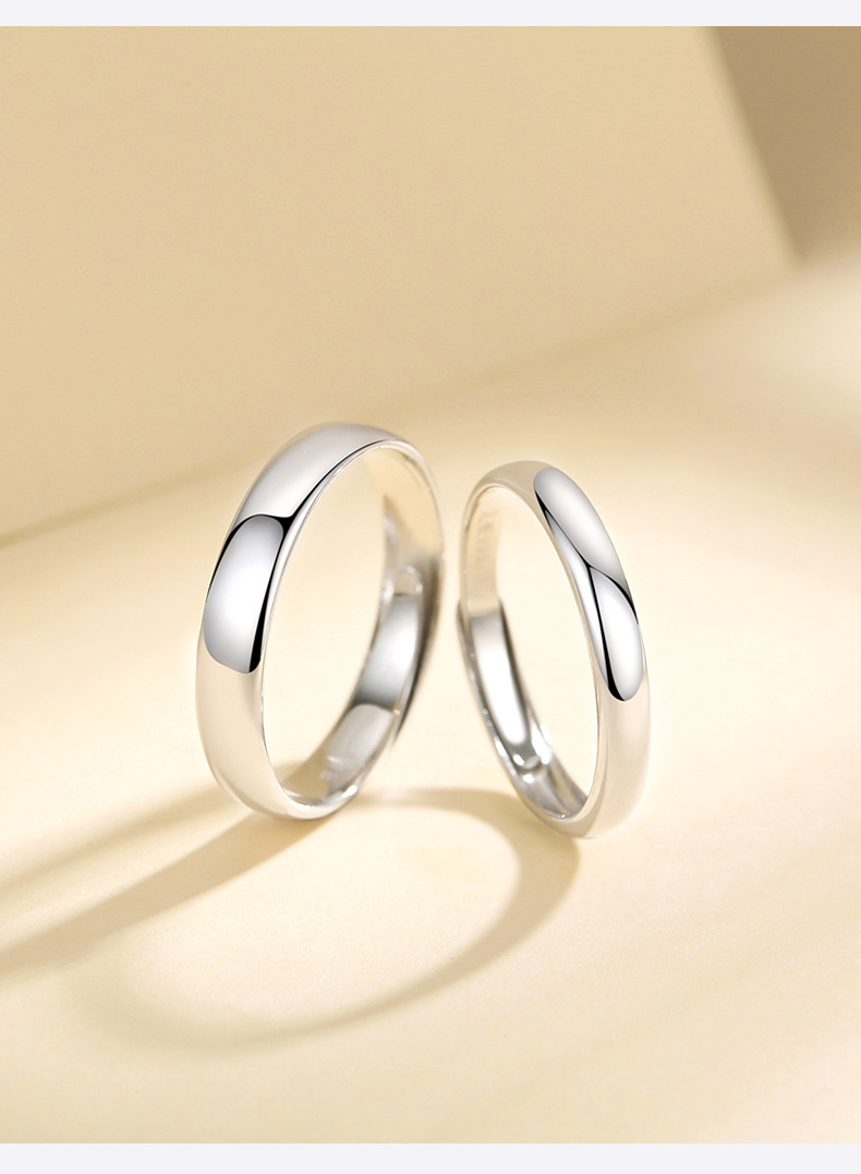 仿999光面情侣戒指男女款小众设计素圈520情人节可调节情侣对戒