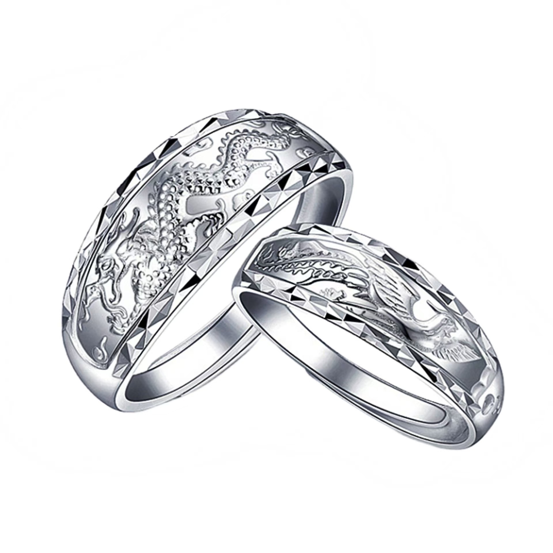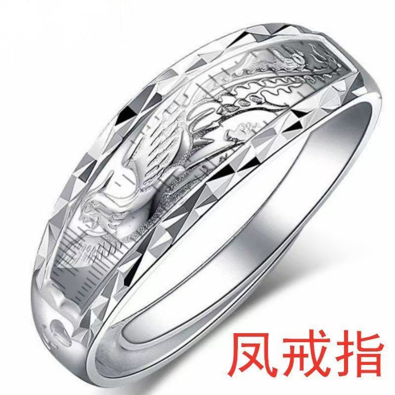 镀银情侣戒指开口戒一对男女情侣款银饰龙凤对戒指环女情人节礼物