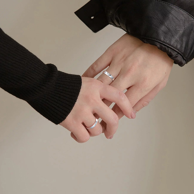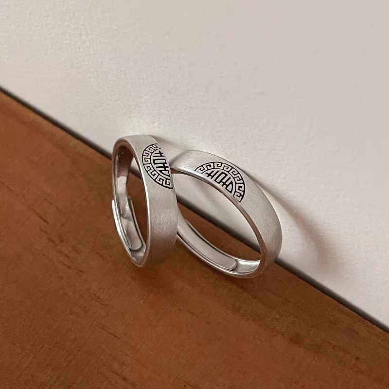 复古小众囍字拼接情侣戒指双喜对戒简约食指戒男女对戒活口可调节