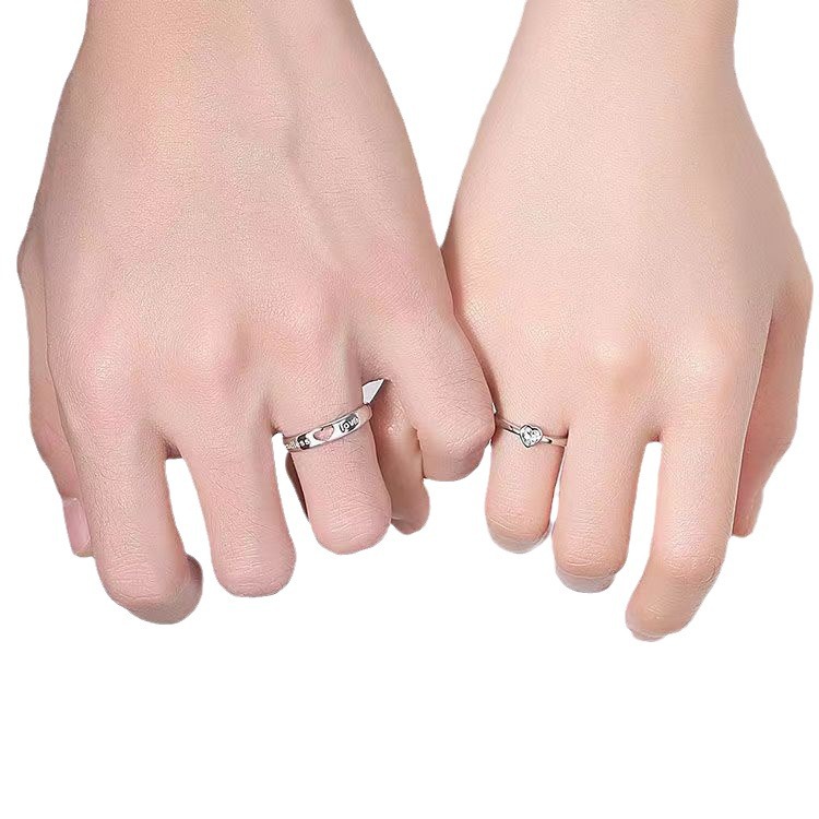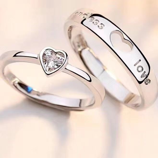 一心爱你情侣戒指男女镂空爱心形钻戒异地恋礼物一心一意开口对戒