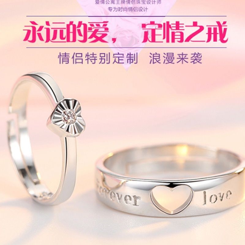 男女情侣对戒戒指情侣戒指女韩版饰品开口情侣对戒 爱心形戒指