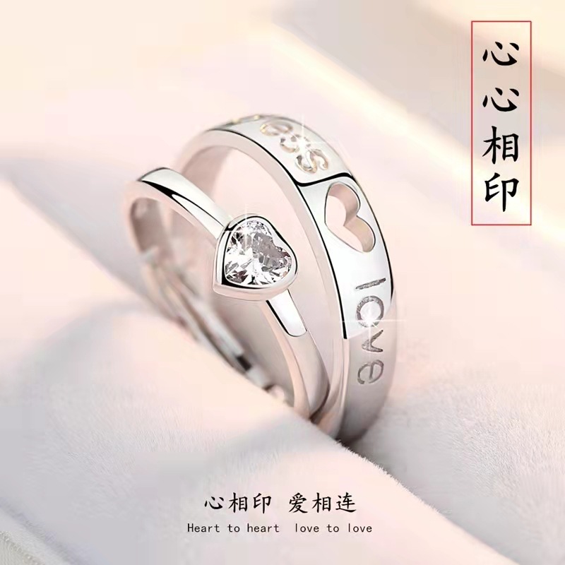 永结同心情侣戒指男女镂空爱心形钻戒异地恋礼物一心一意开口对戒