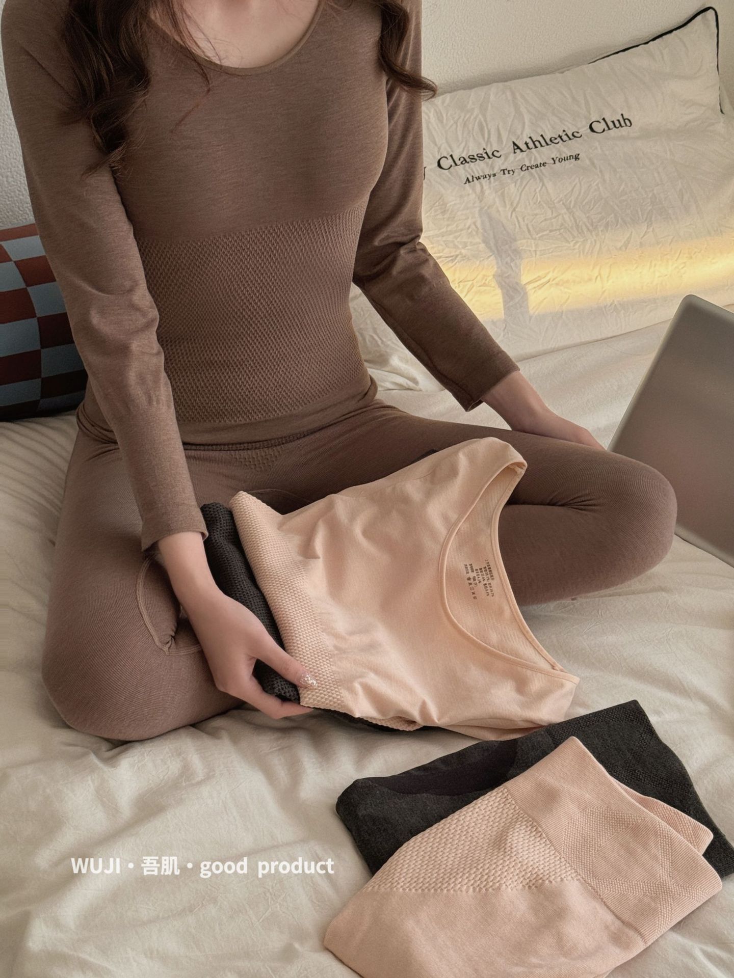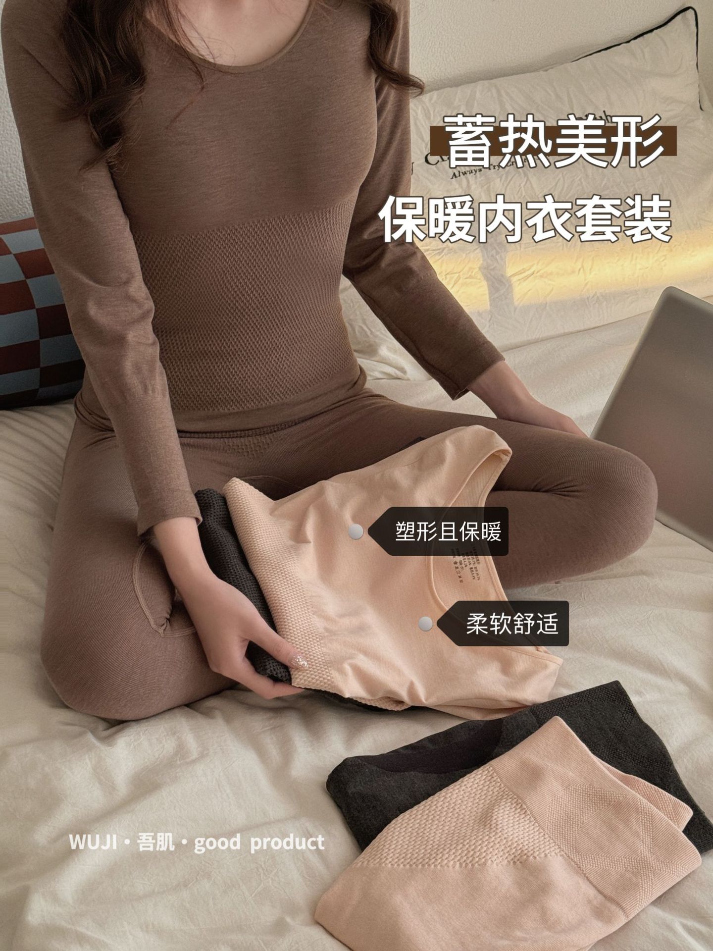 吾肌修容衣*保暖内衣女士套装冬季塑型无痕打底衫圆领秋衣秋裤