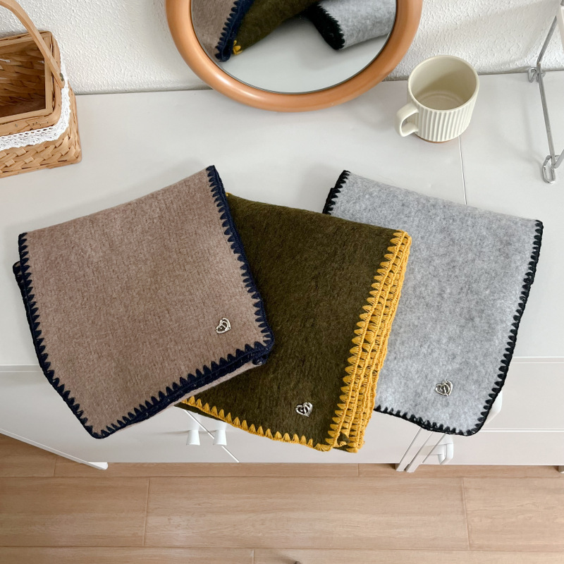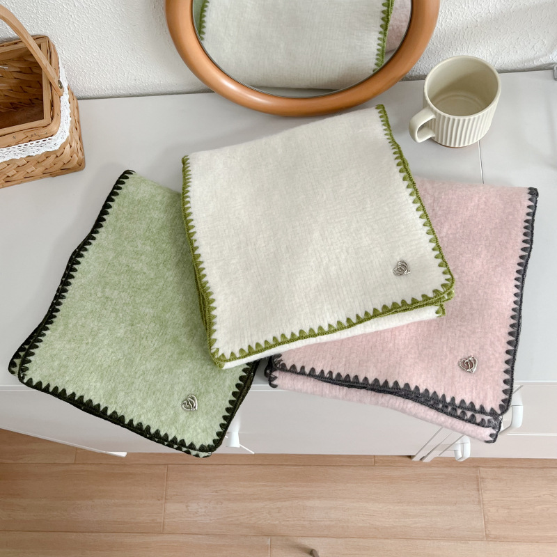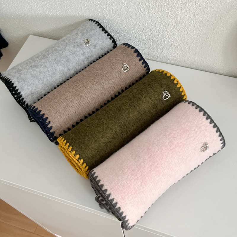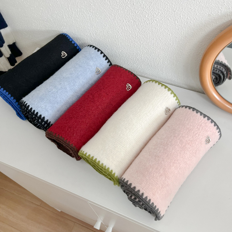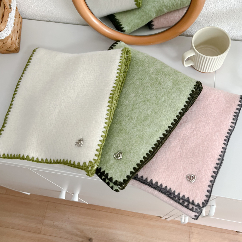 2024秋冬新品围巾女士高级感保暖百搭韩版披肩纯色锁边氛围感围脖