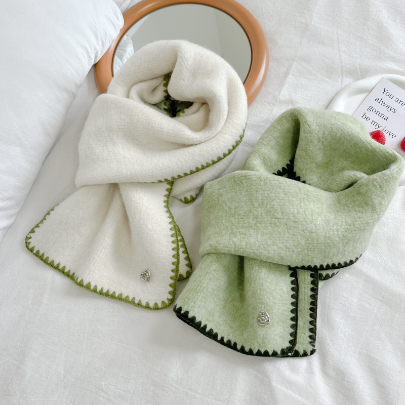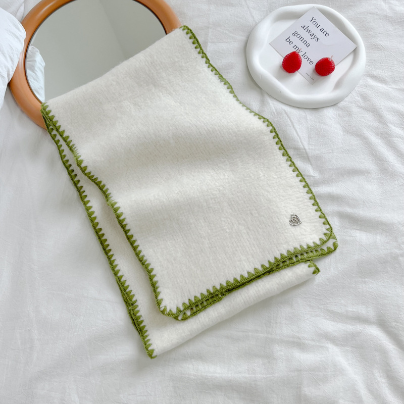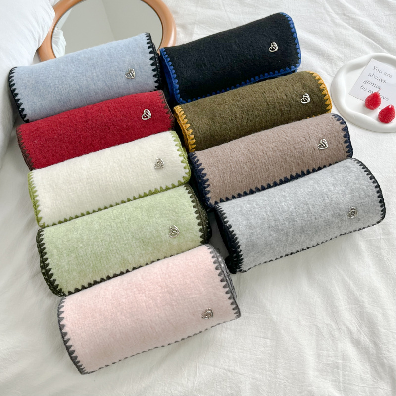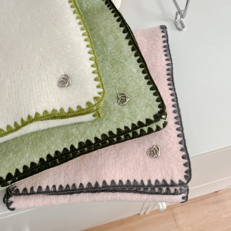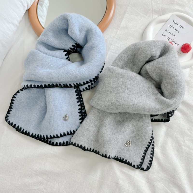 2024秋冬新品围巾女士高级感保暖百搭韩版披肩纯色锁边氛围感围脖
