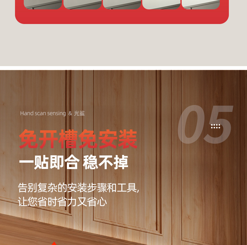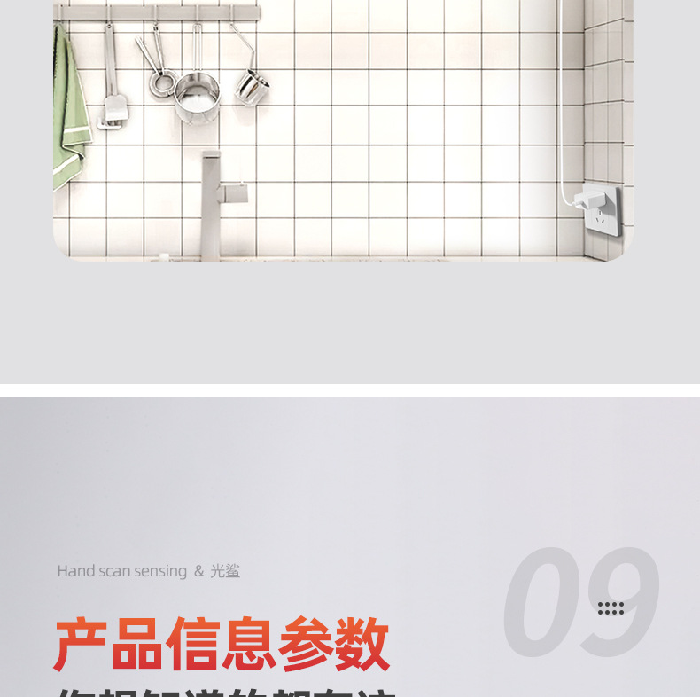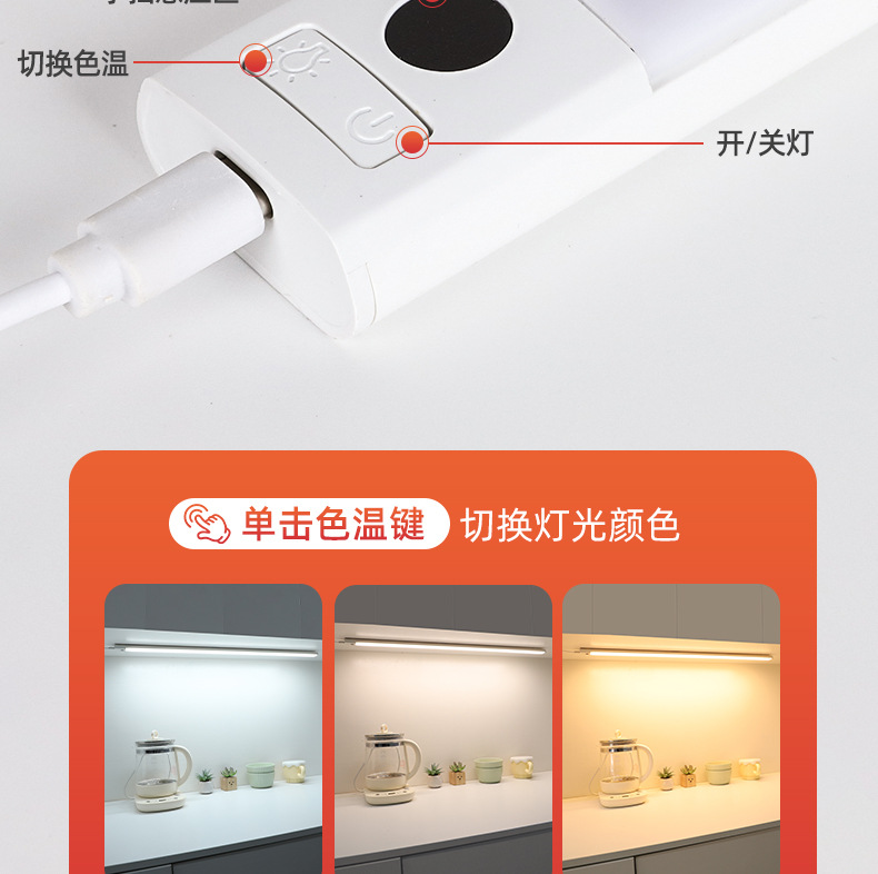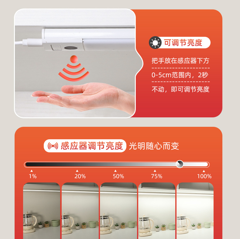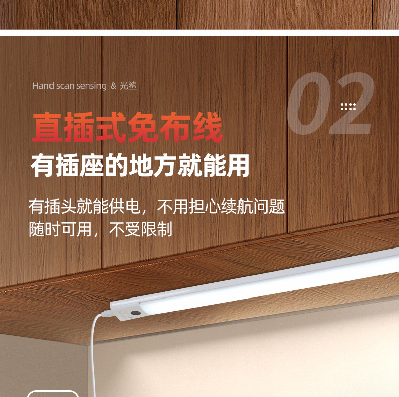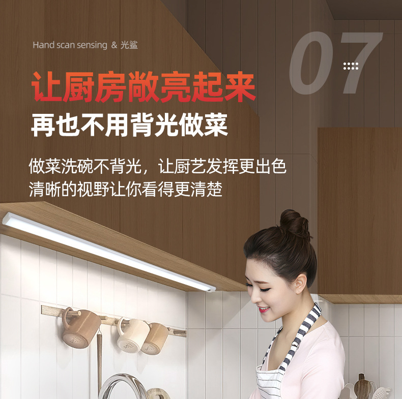 插电手扫感应灯 橱柜灯led柜底灯厨房切菜照明吊柜下调光补光灯