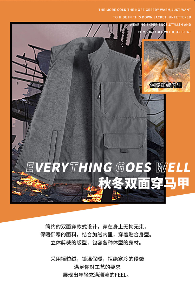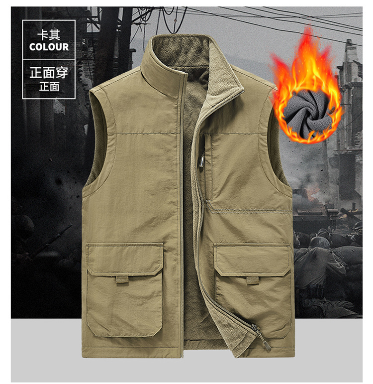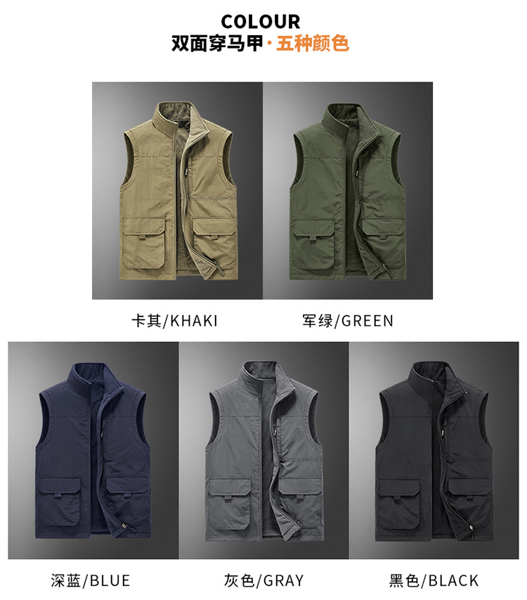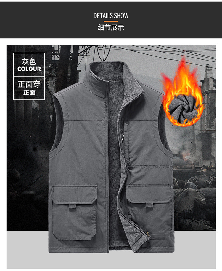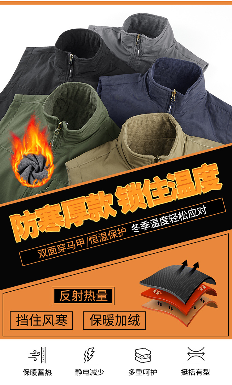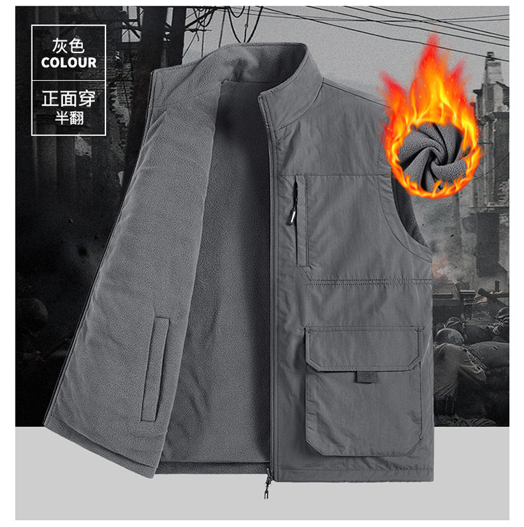 【双面穿】加绒马甲户外速干男薄款工装坎肩钓鱼摄影背心马夹大码