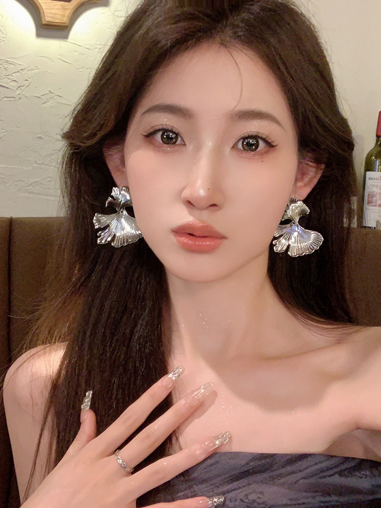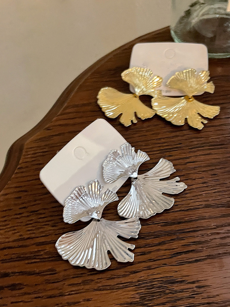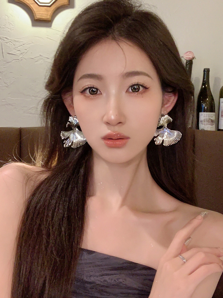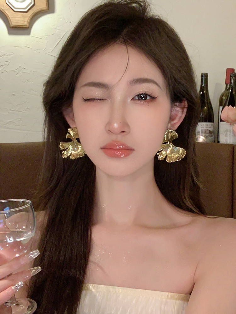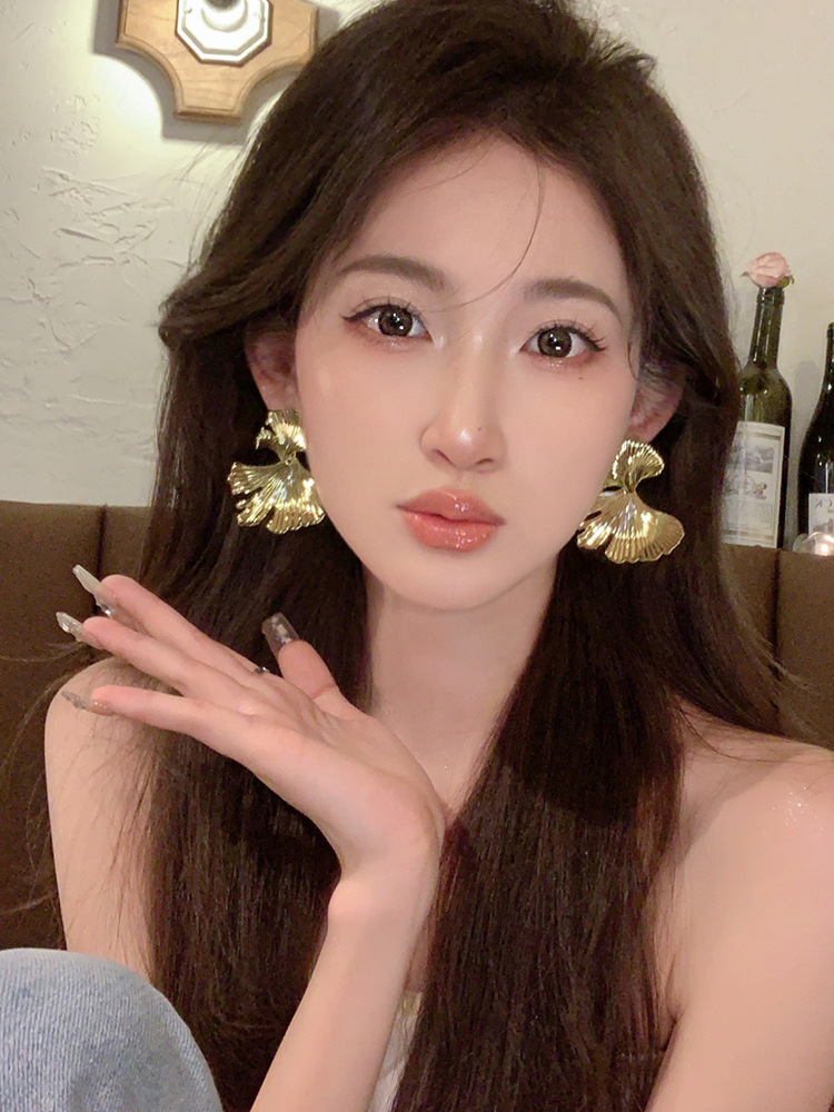 银杏叶高级感个性耳环2023新款潮小众设计感气质金属耳钉饰品耳饰