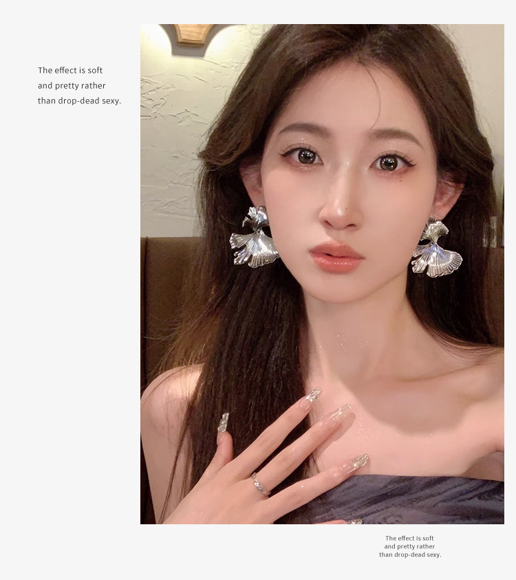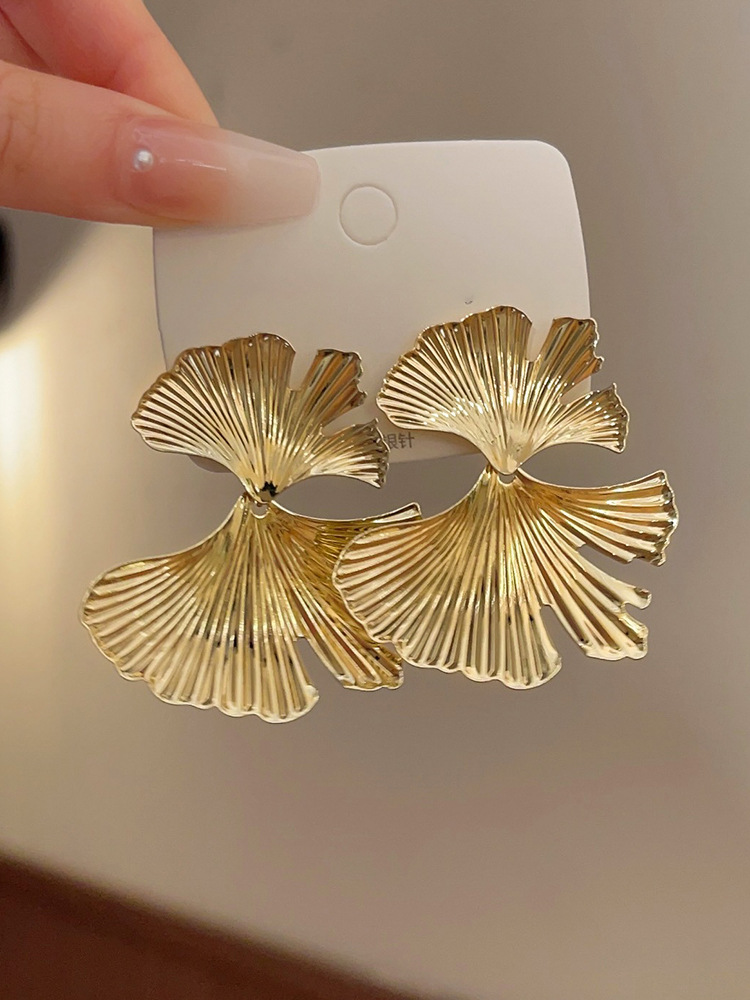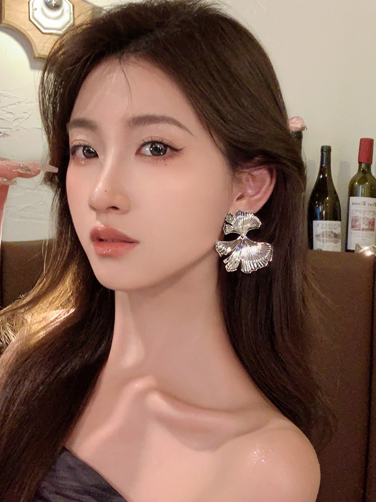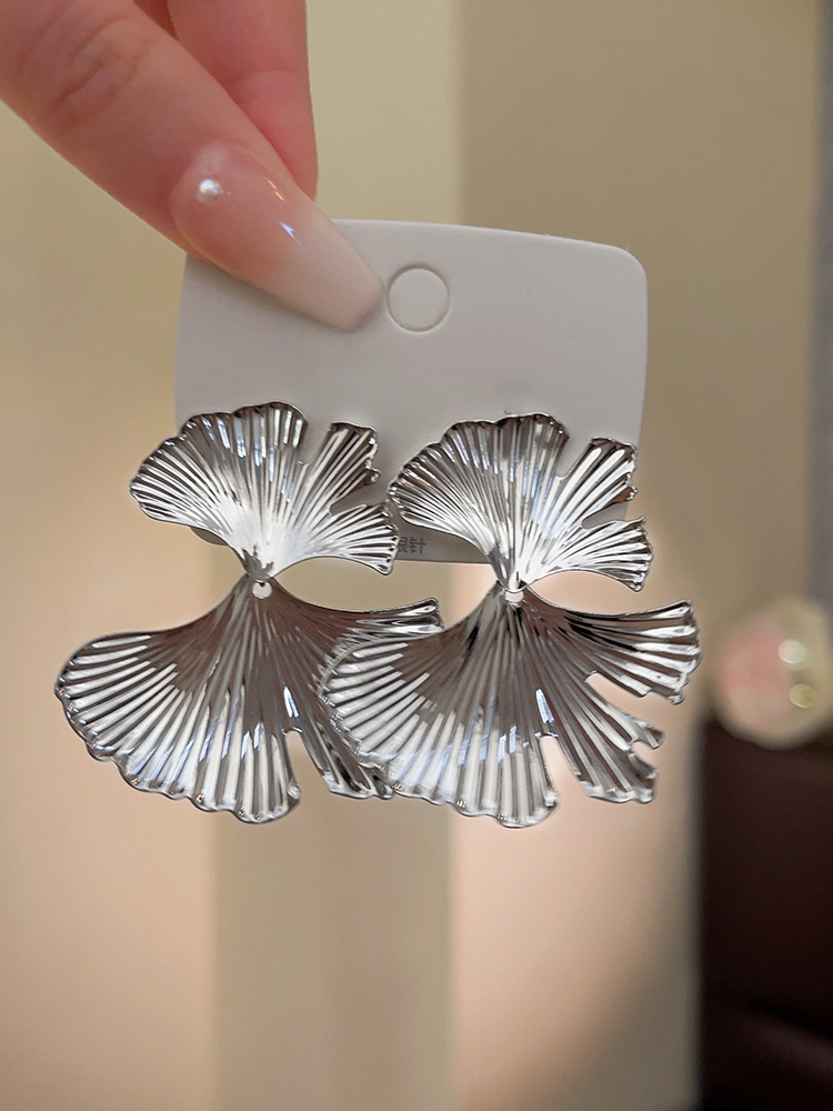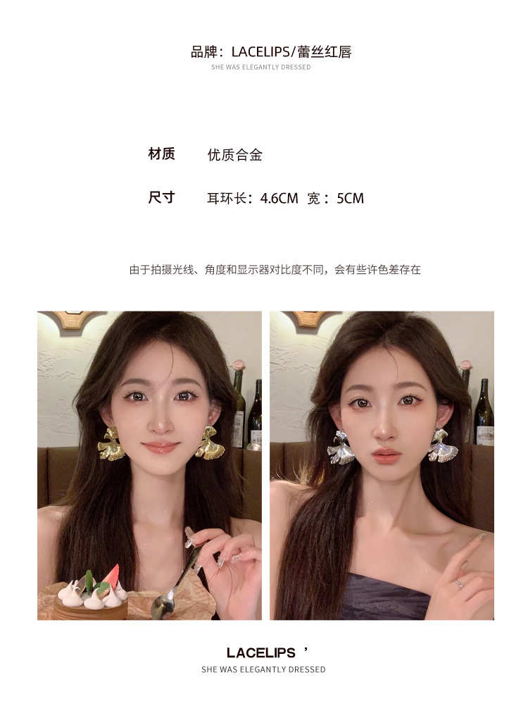 银杏叶高级感个性耳环2023新款潮小众设计感气质金属耳钉饰品耳饰