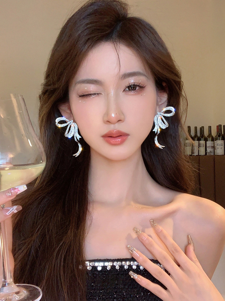 新款蝴蝶结耳钉女轻奢耳环小众设计感高级耳饰新娘婚纱结婚耳环