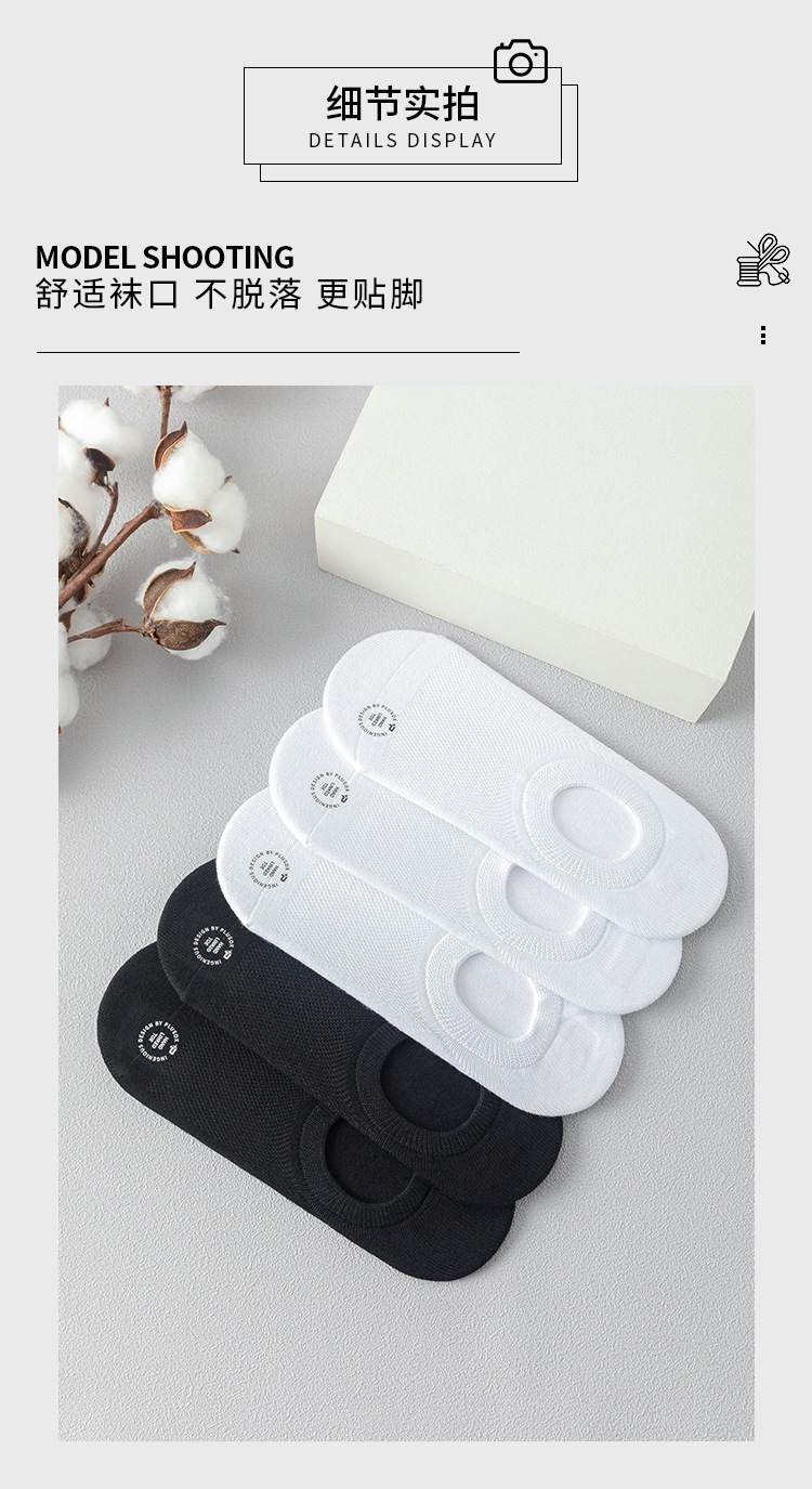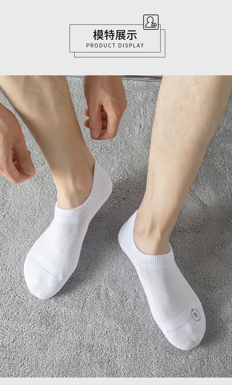 plusox袜子男隐形袜低帮浅口黑白纯色袜网眼透气纯棉夏季男士船袜