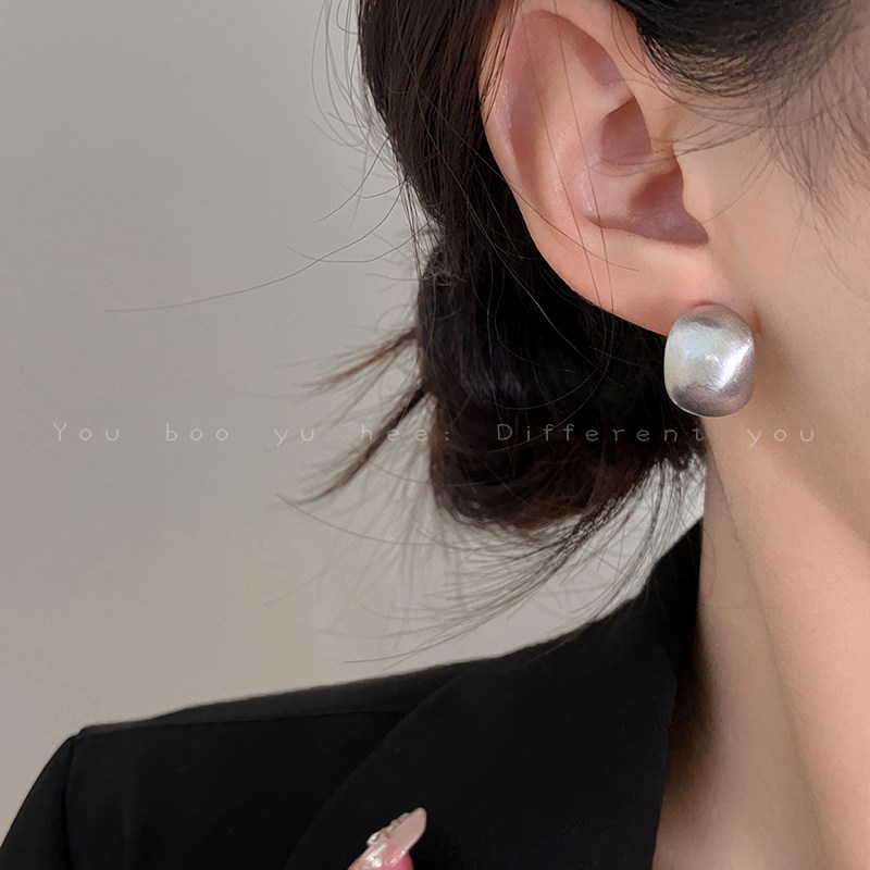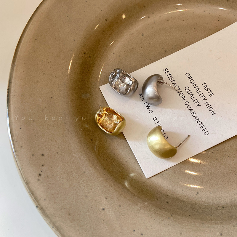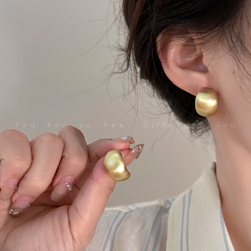 哑光拉丝金色耳环女2024新款爆款高级感耳钉复古港风设计金属耳饰