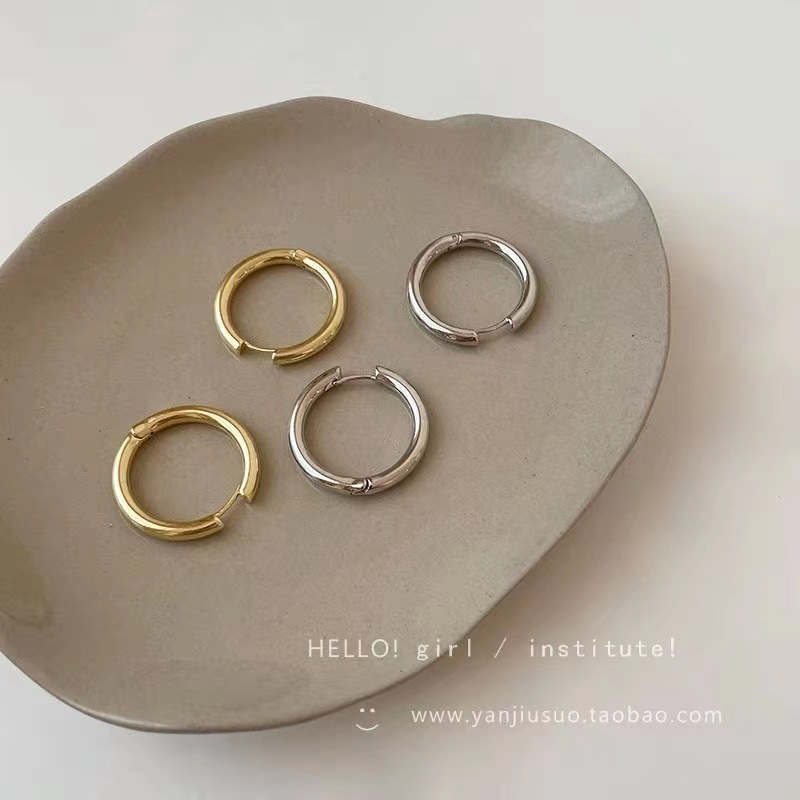 甜酷素圈耳环小众设计感高级耳圈女耳钉2023年爆款小耳扣圆圈耳饰
