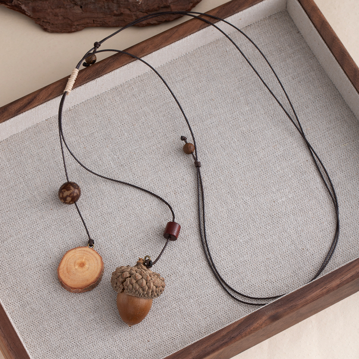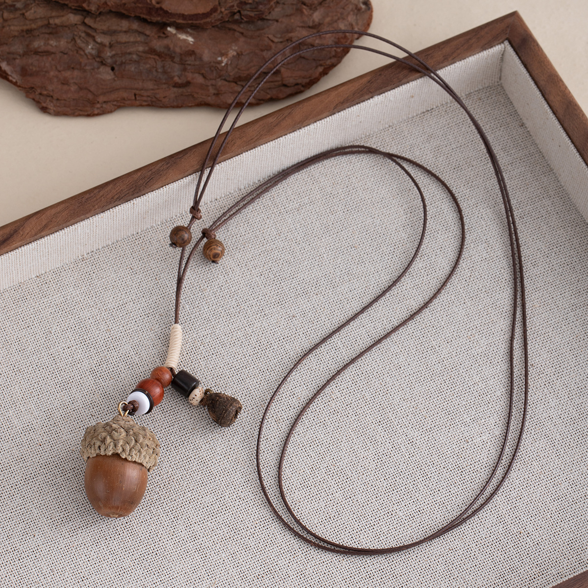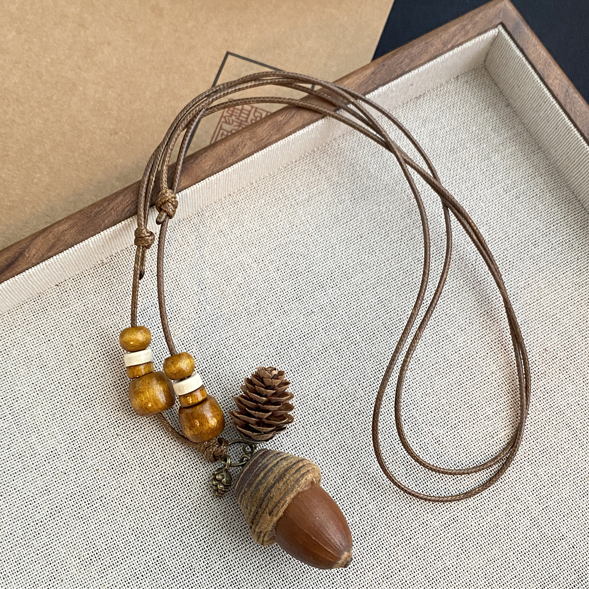 复古民族风小橡果吊坠编织长款项链女小众独特高级感简约百搭配饰