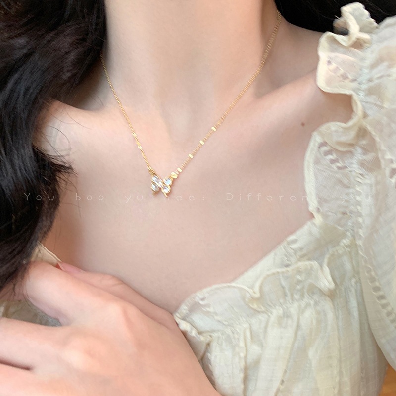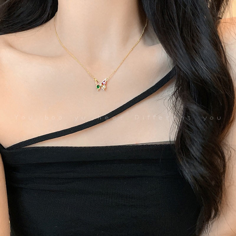 仙气飘飘~锆石蝴蝶吊坠项链纯银高级感时尚锁骨链轻奢精致脖颈链