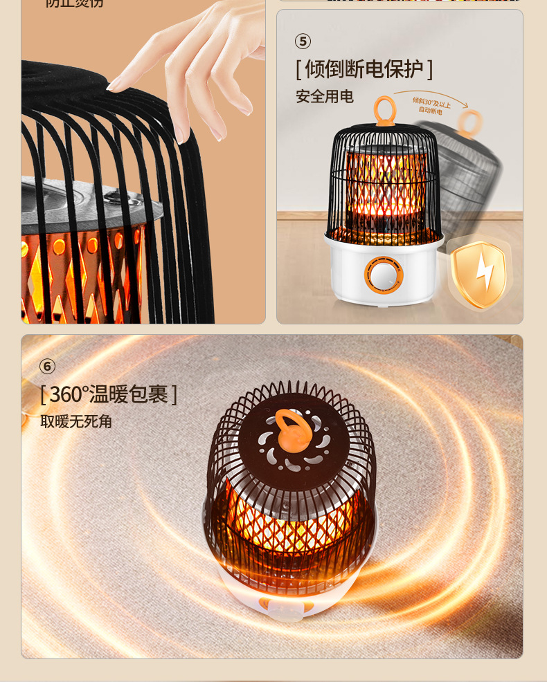 骆驼鸟笼取暖器家用小太阳电暖器烤火炉节能省电小型电暖器烤火器