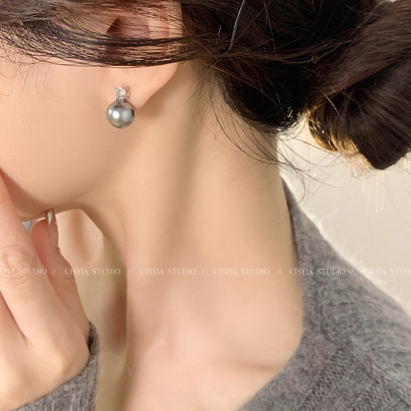 经典闪钻925银针珍珠耳钉2023新款轻奢小众高级感百搭耳环耳饰潮