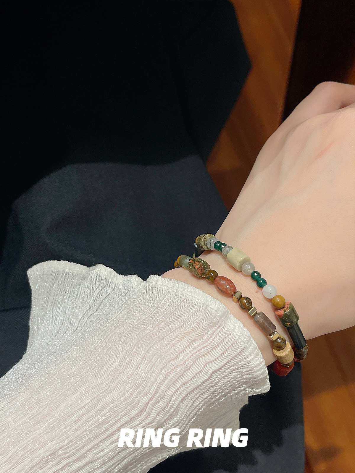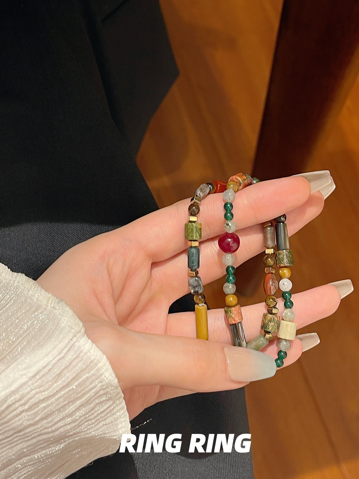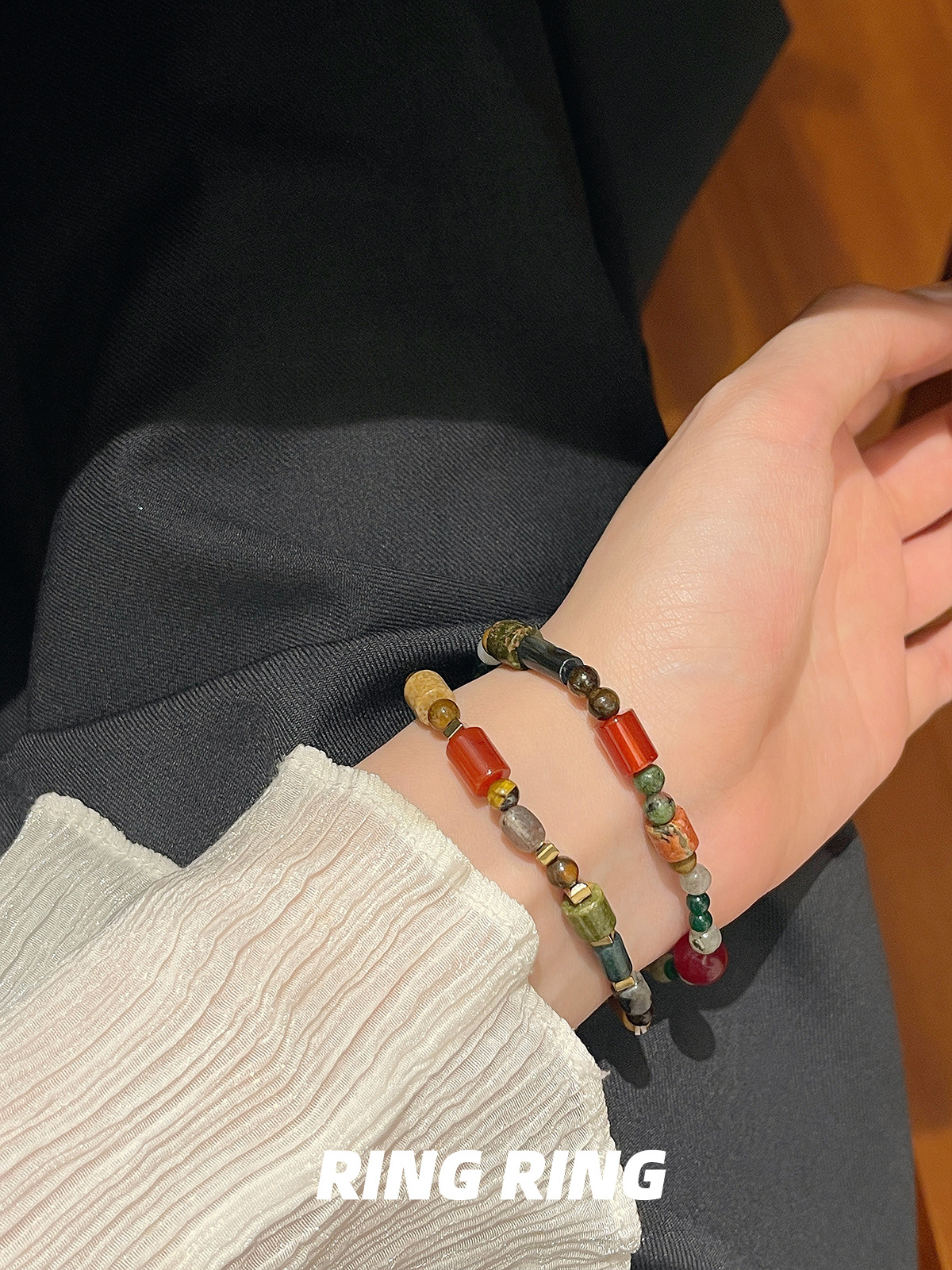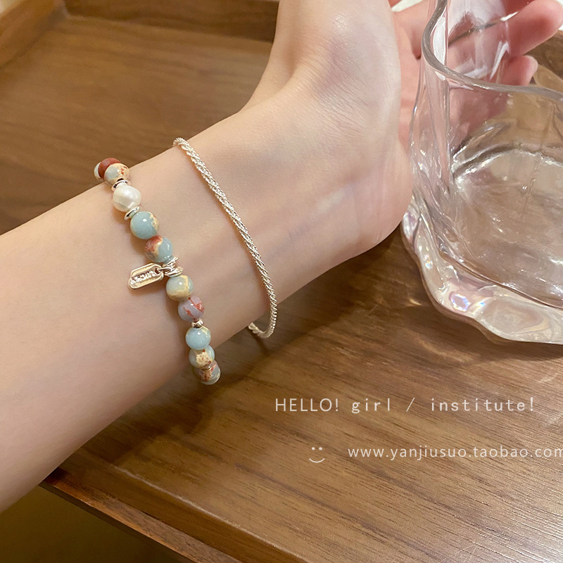 天然玛瑙石串珠手链 女春夏ins小众设计感复古手串闺蜜新中式手饰