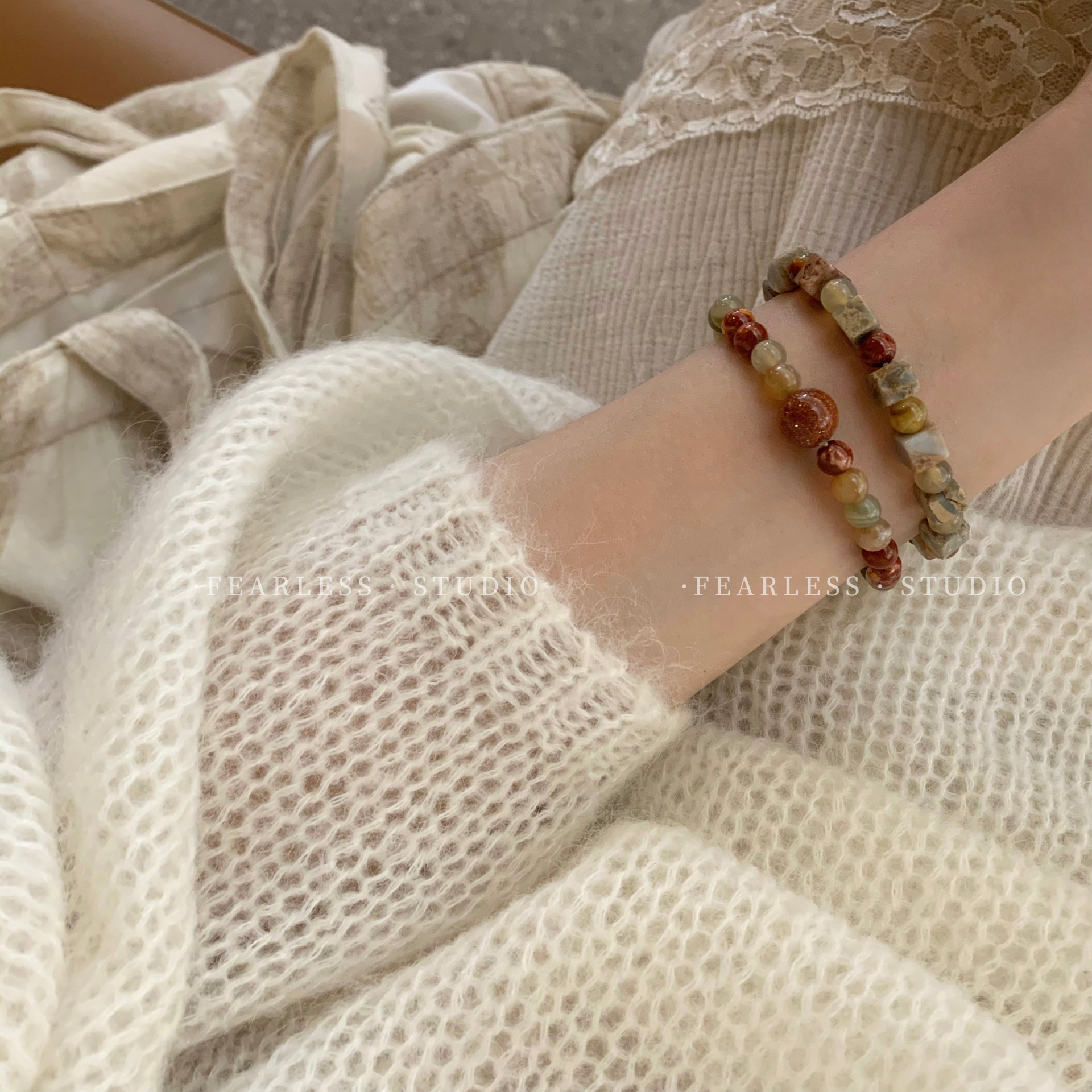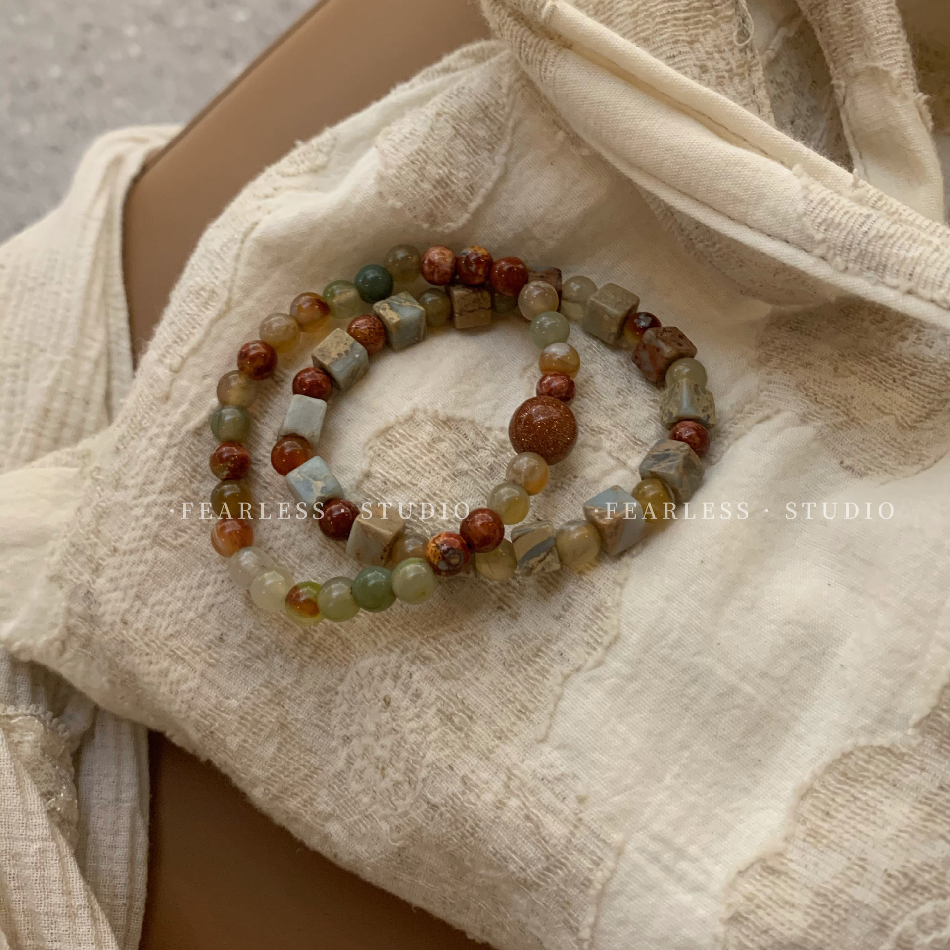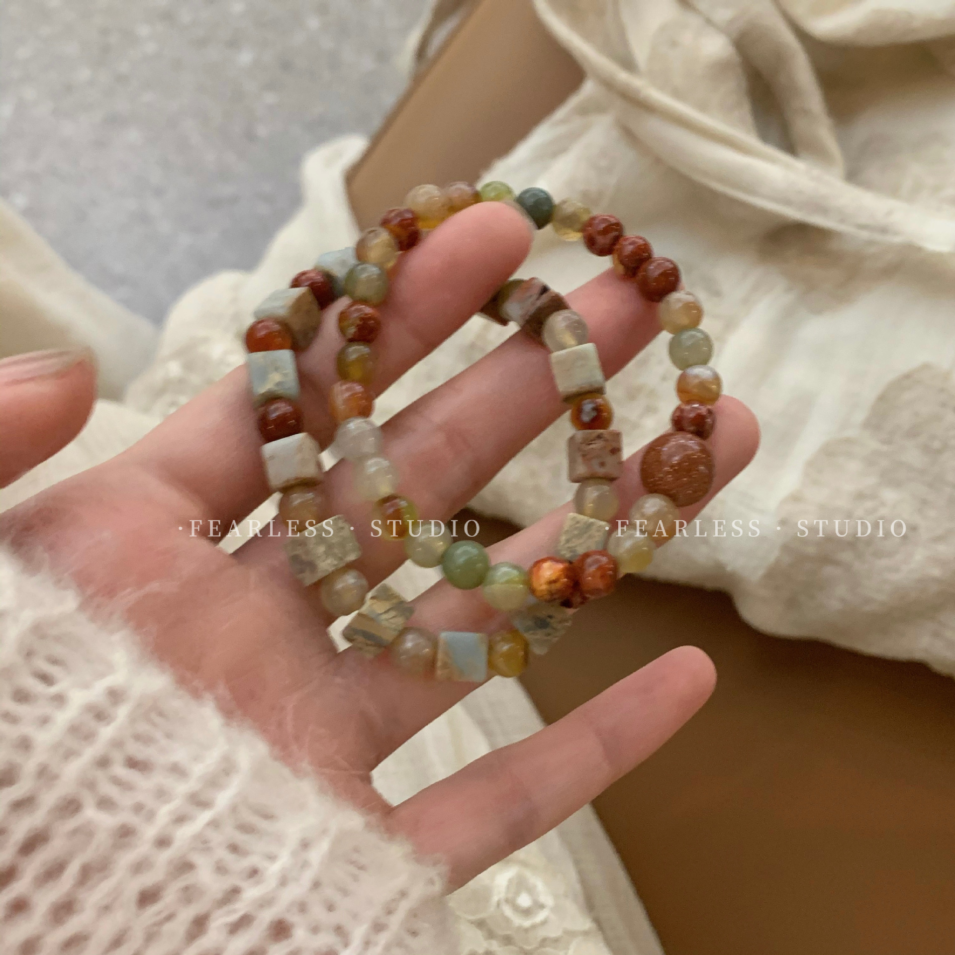 天然玛瑙石串珠手链 女春夏ins小众设计感复古手串闺蜜新中式手饰