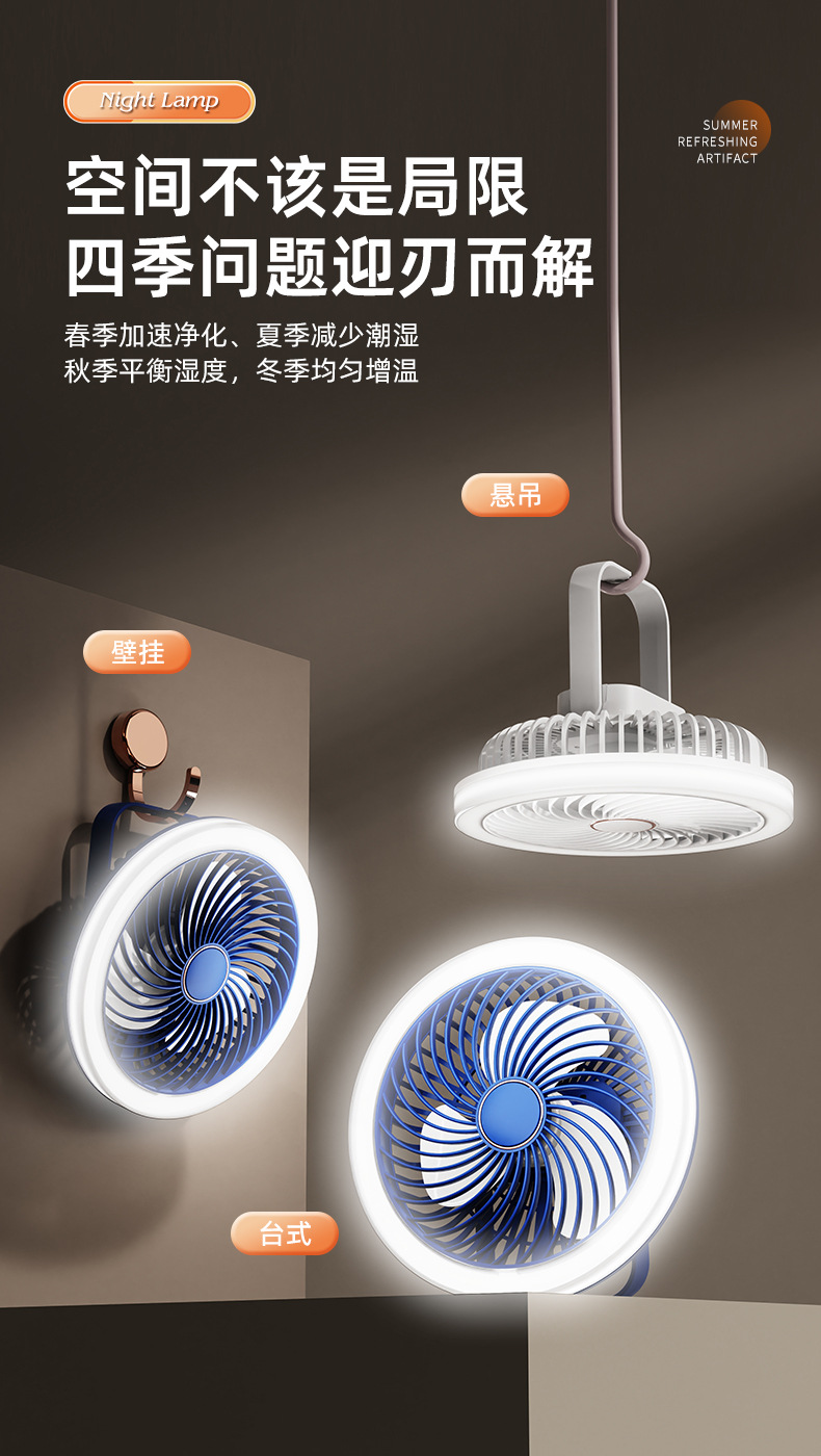 新款遥控灯光风扇桌面台灯四合一挂壁吊扇便捷式小风扇礼品批发