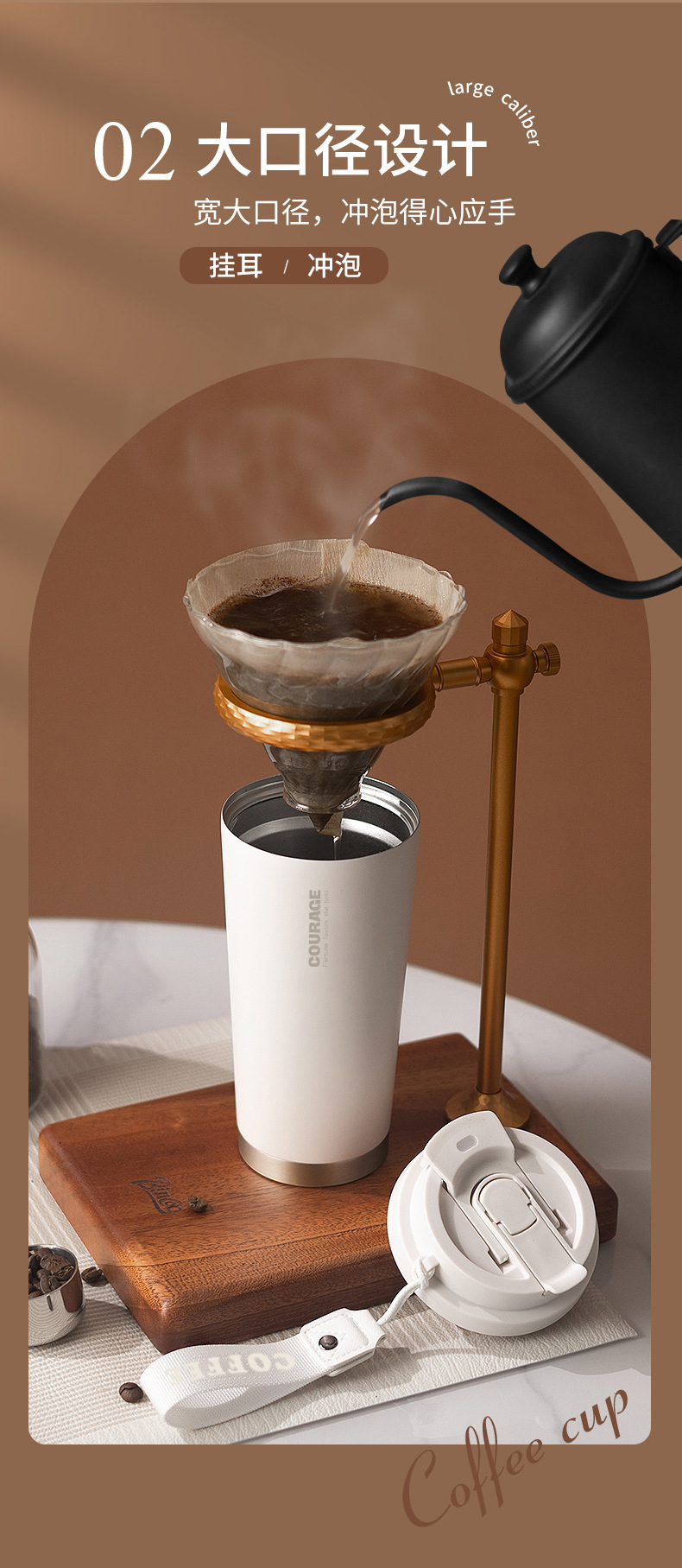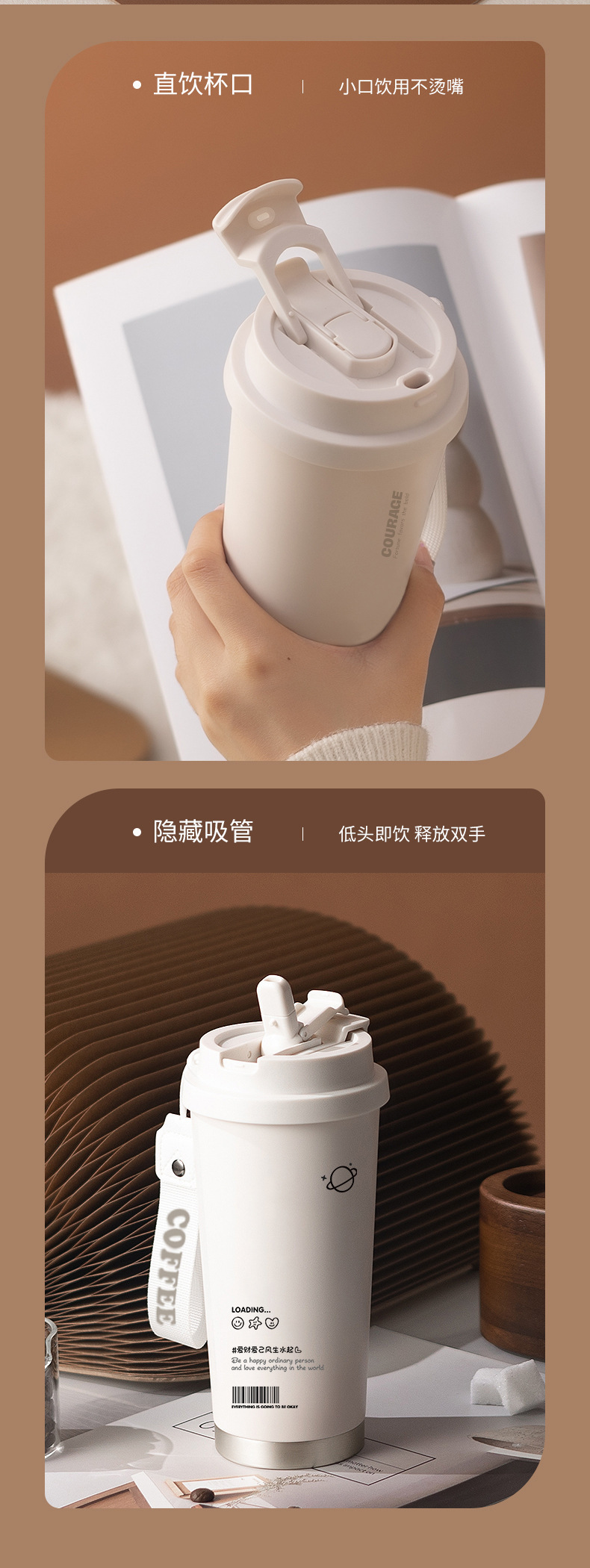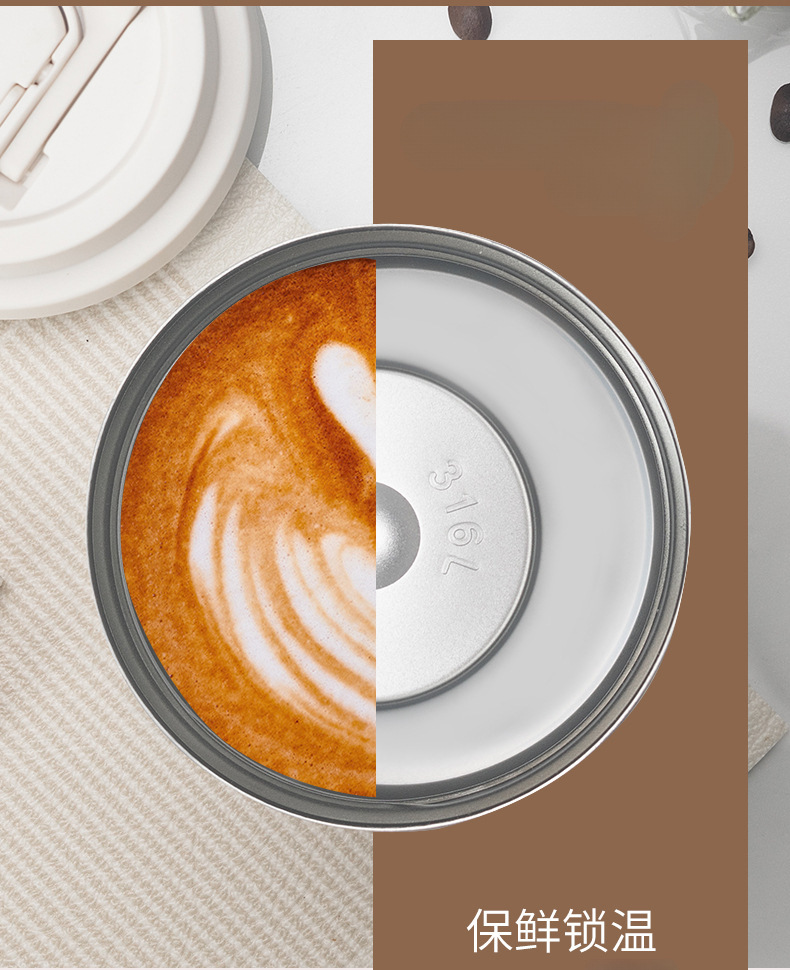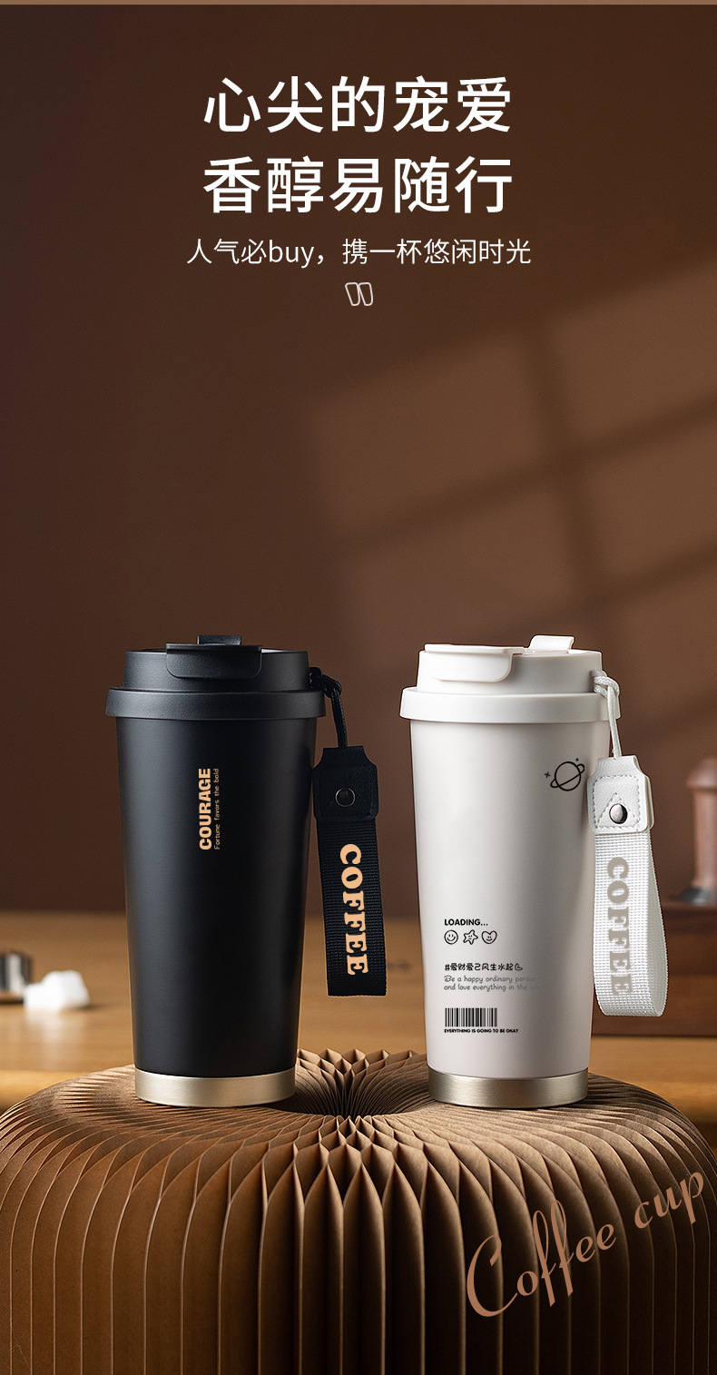 简约轻奢咖啡杯家用双饮保冷杯办公室保温杯女生吸管杯不锈钢水杯