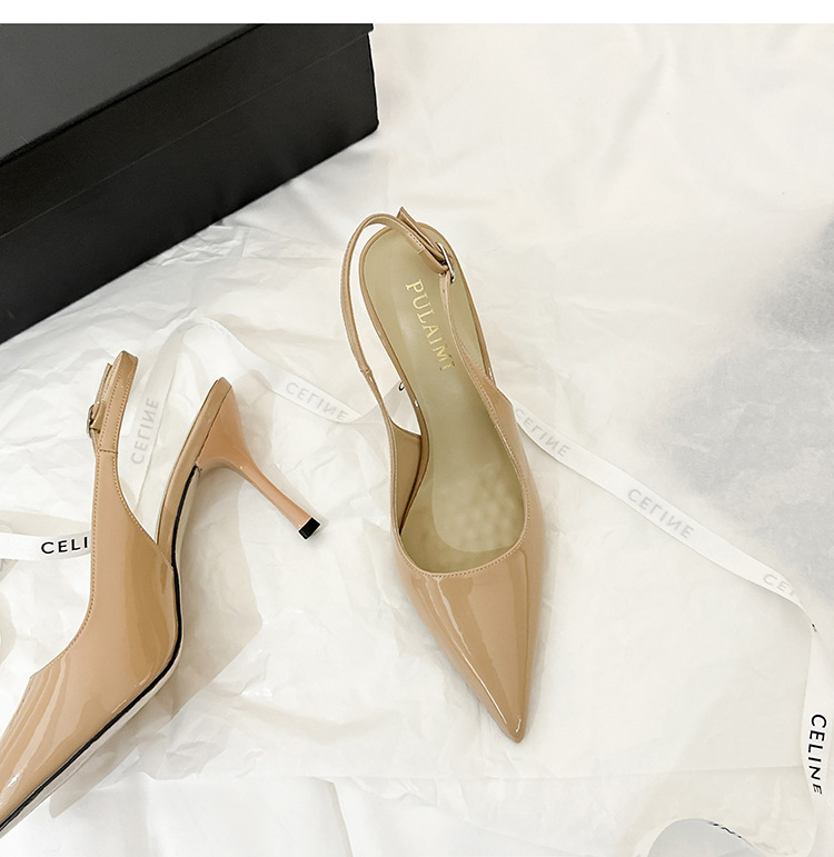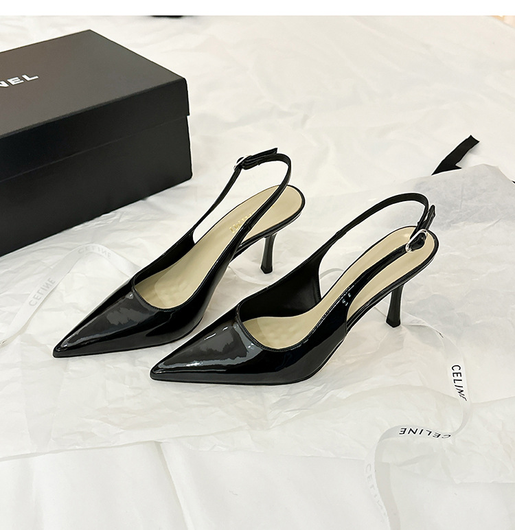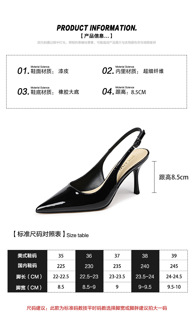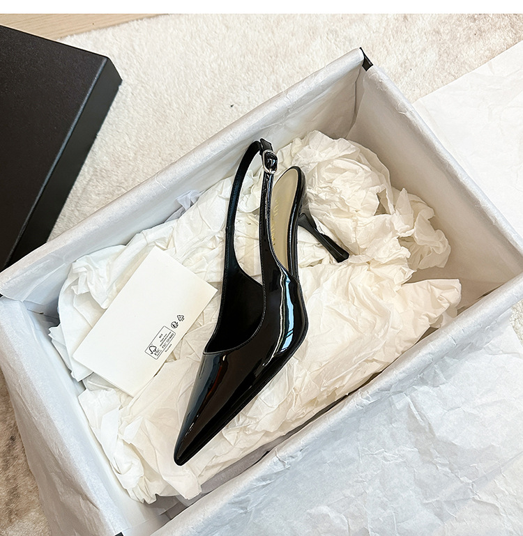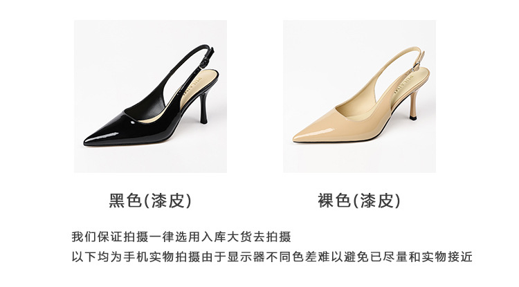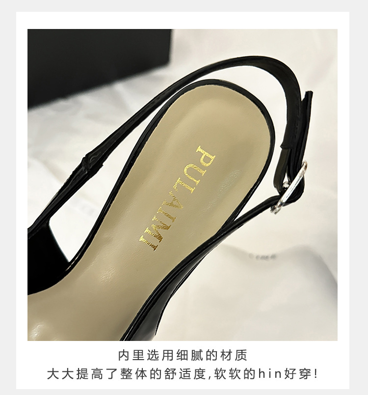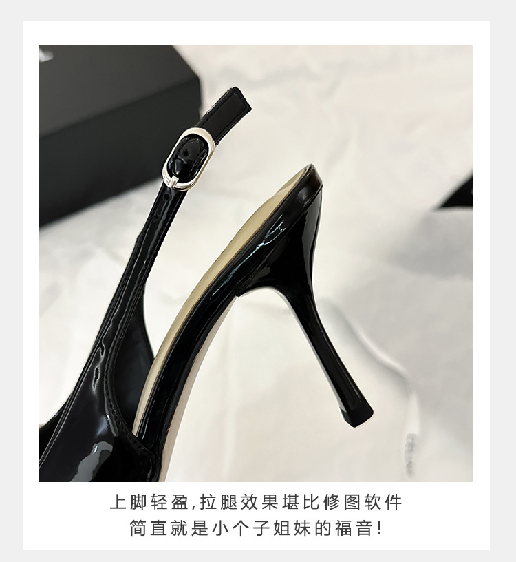 2025漆皮高跟鞋后空细跟尖头浅口一字带半拖凉鞋加肥加宽414243