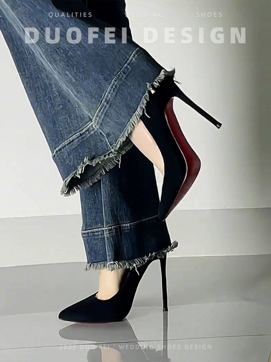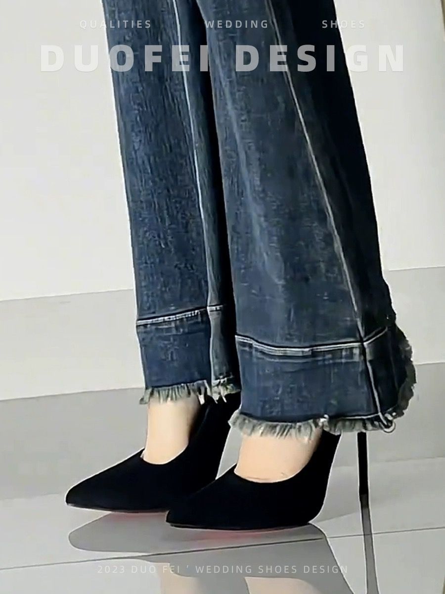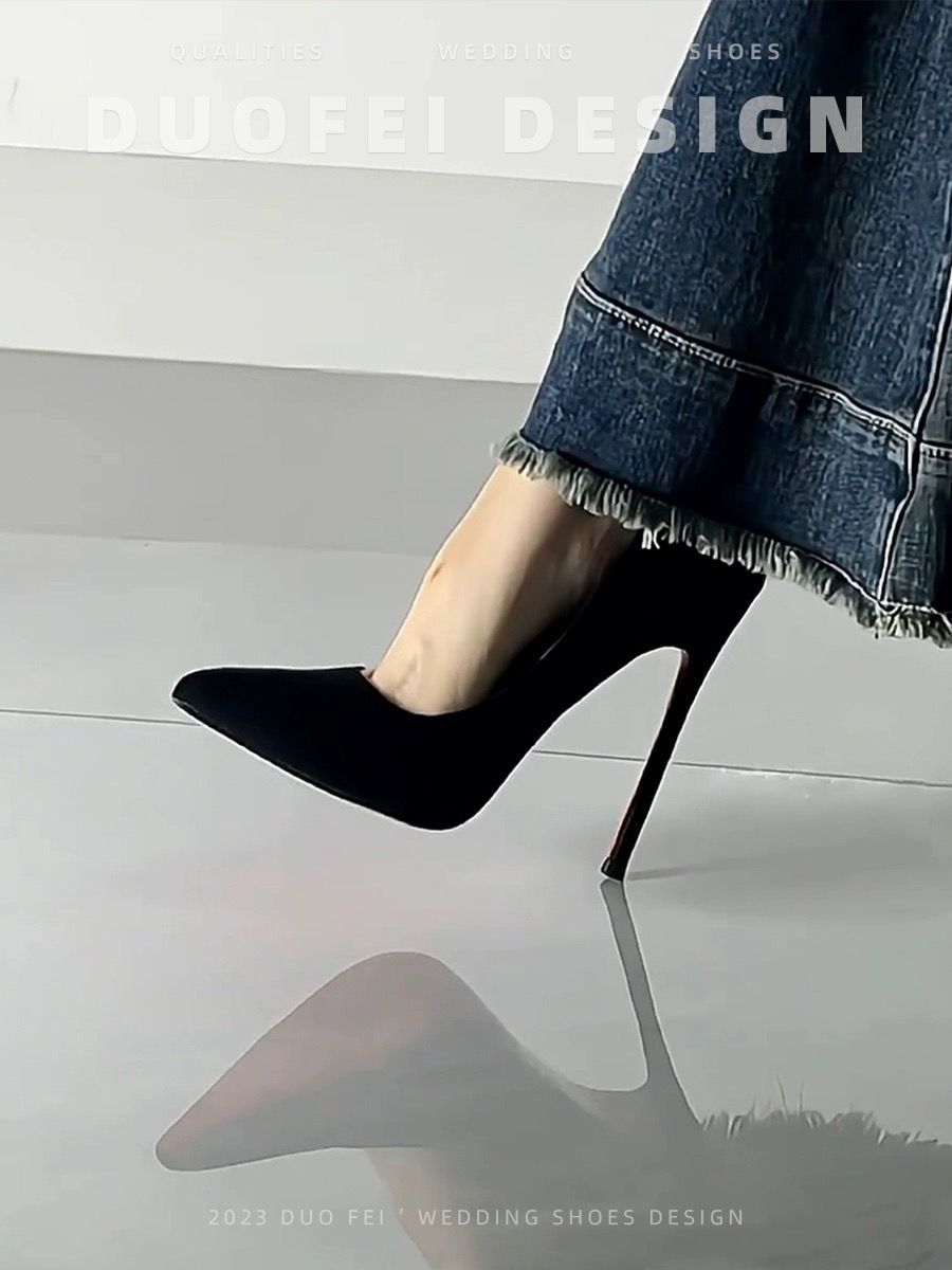 法式性感高跟鞋女2024新款春季尖头浅口百搭单鞋细跟防滑工作鞋女