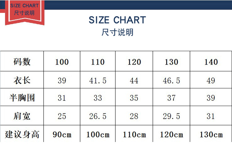 | size 140 (recommended height 130cm)(140码(建议身高130cm)) | USD $5.74 | 789 piece available |