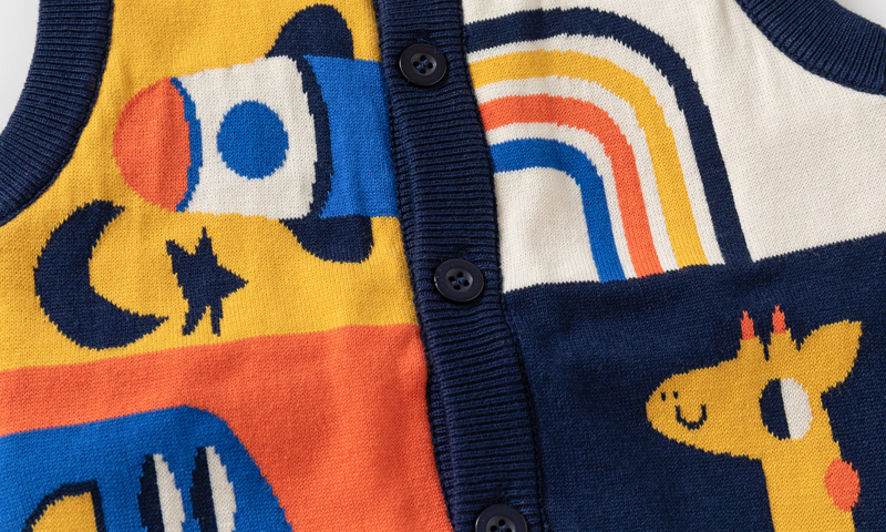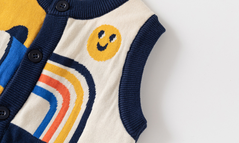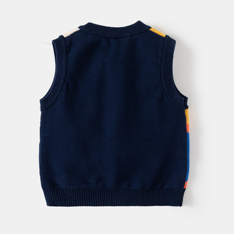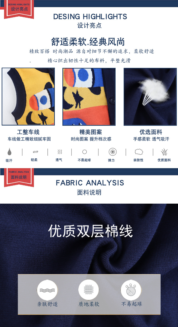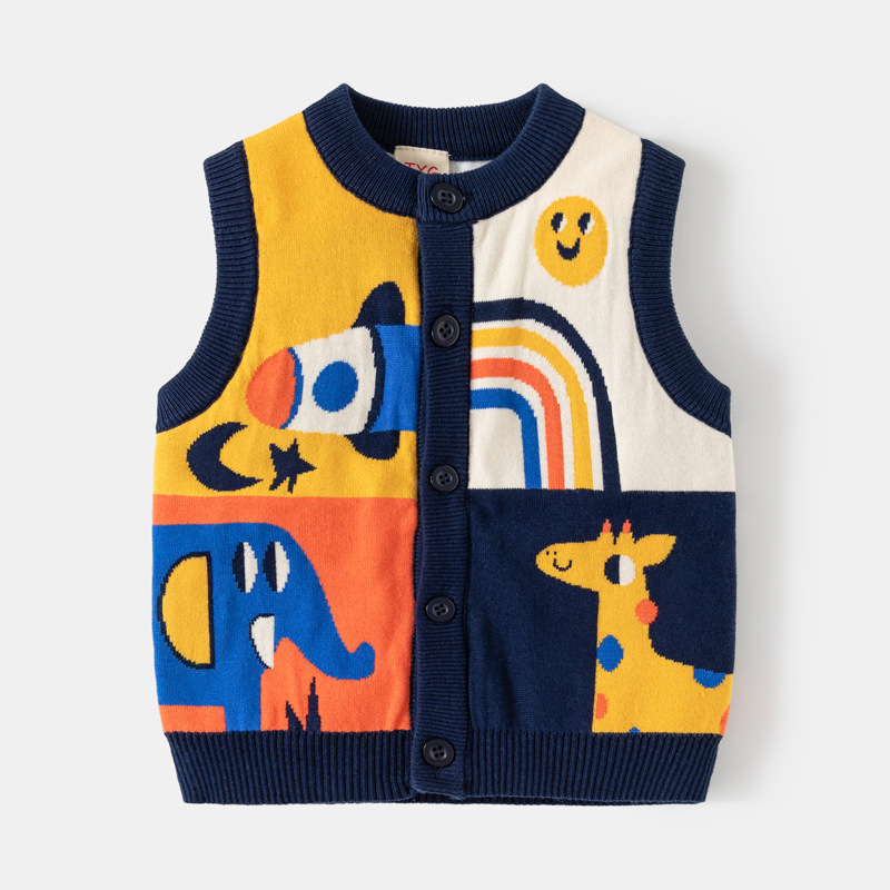 TYGKids 2025春秋新款童装男童开胸马甲宝宝卡通提花双层毛衣背心