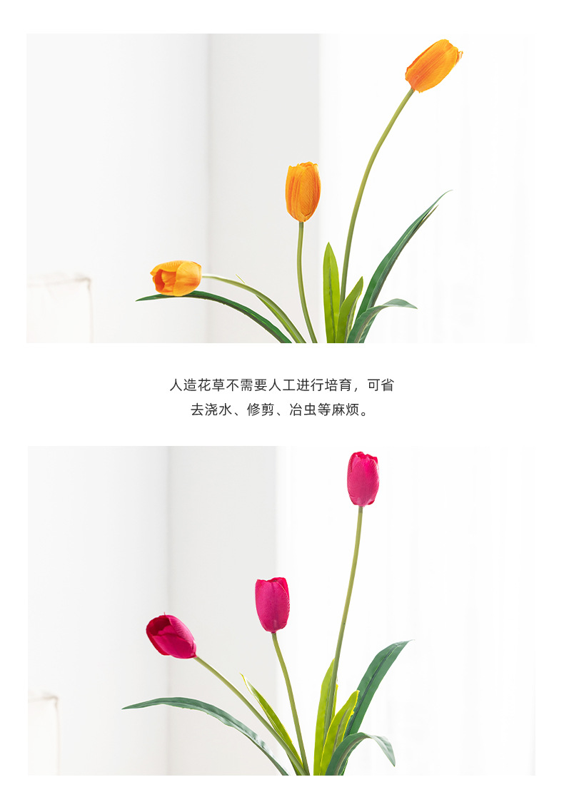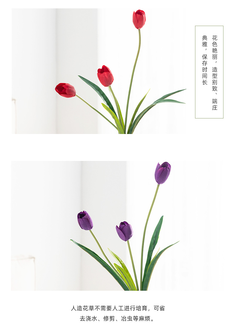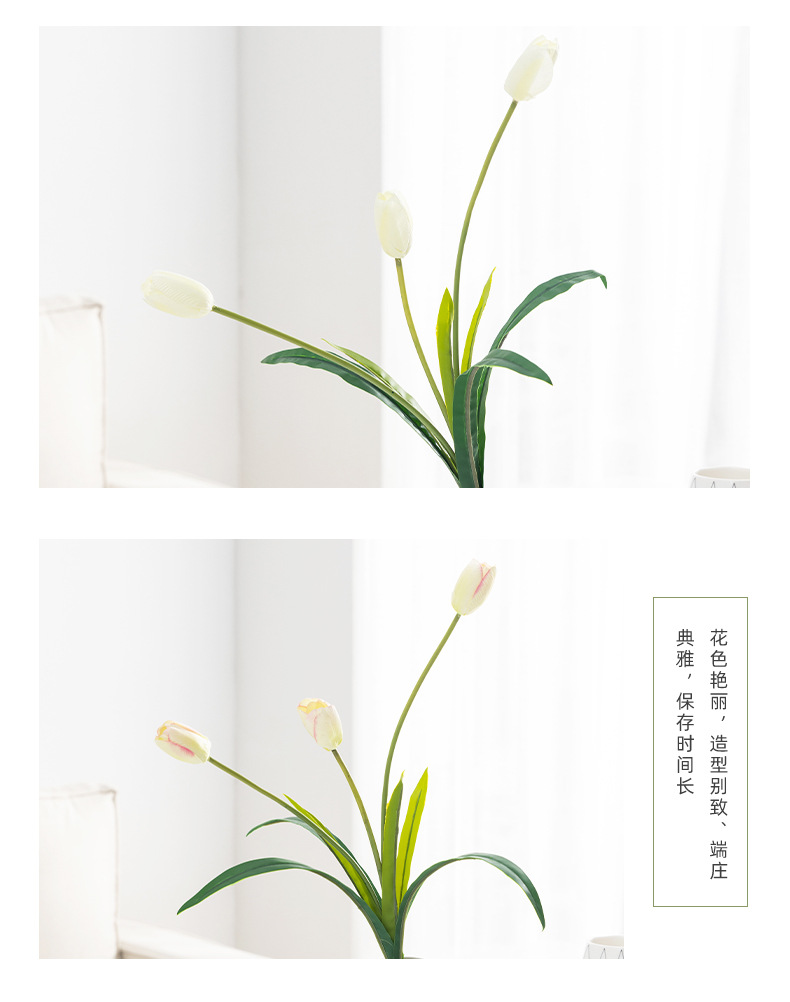 百花邦3头郁金香仿真花假花装饰 仿真绿植花艺客厅餐桌背景摆件