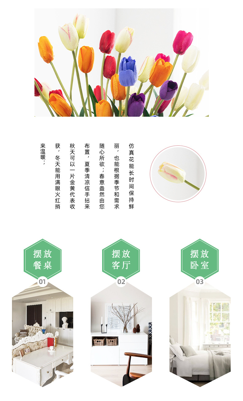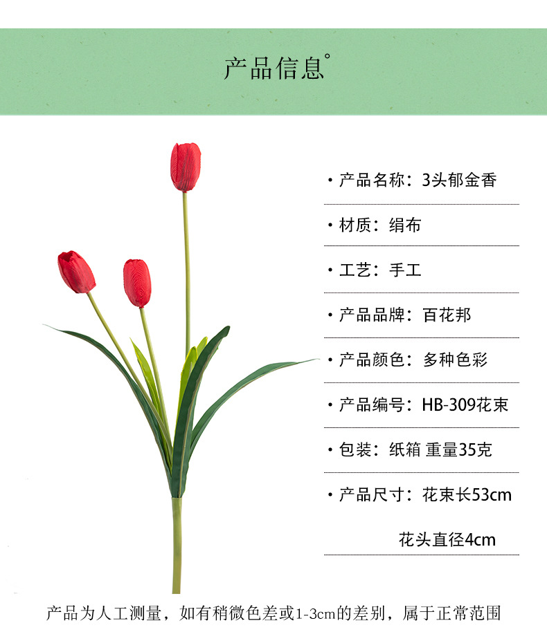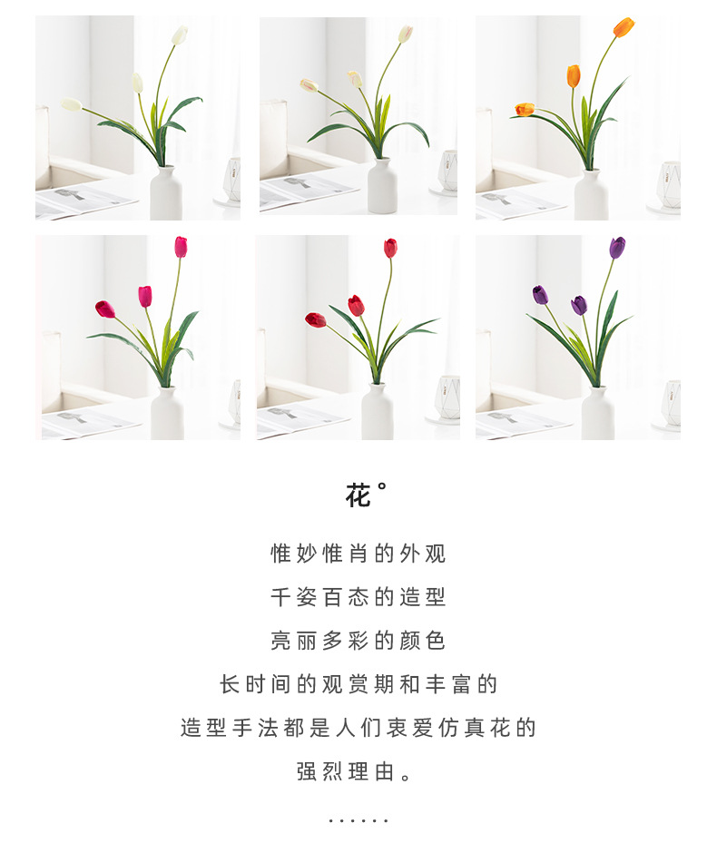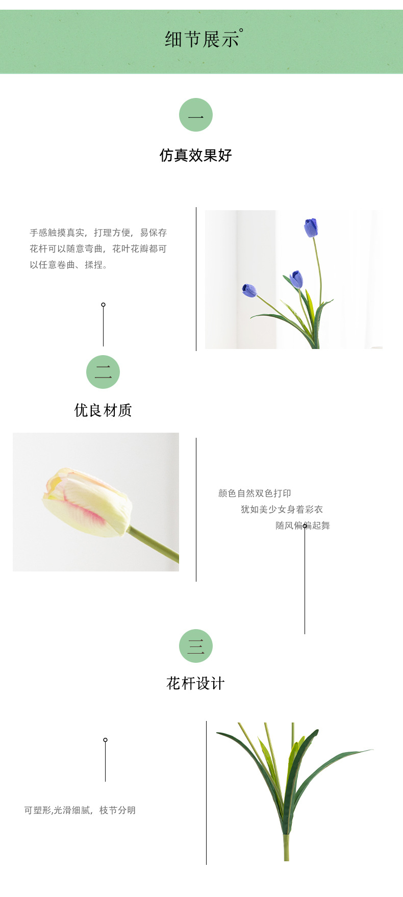 百花邦3头郁金香仿真花假花装饰 仿真绿植花艺客厅餐桌背景摆件