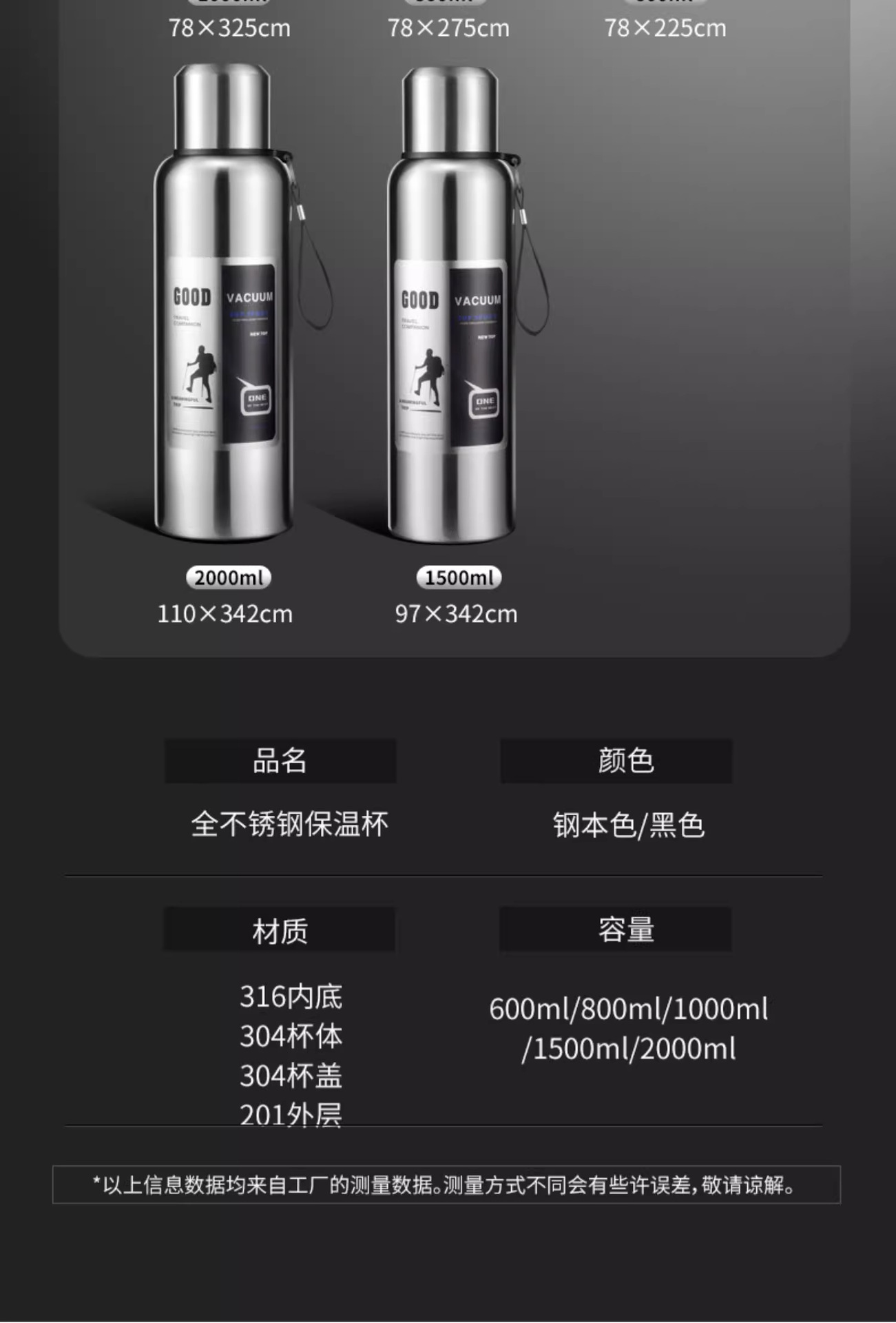 大容量316不锈钢全钢壶男士户外旅行登山便携保温杯杯子批发跨境
