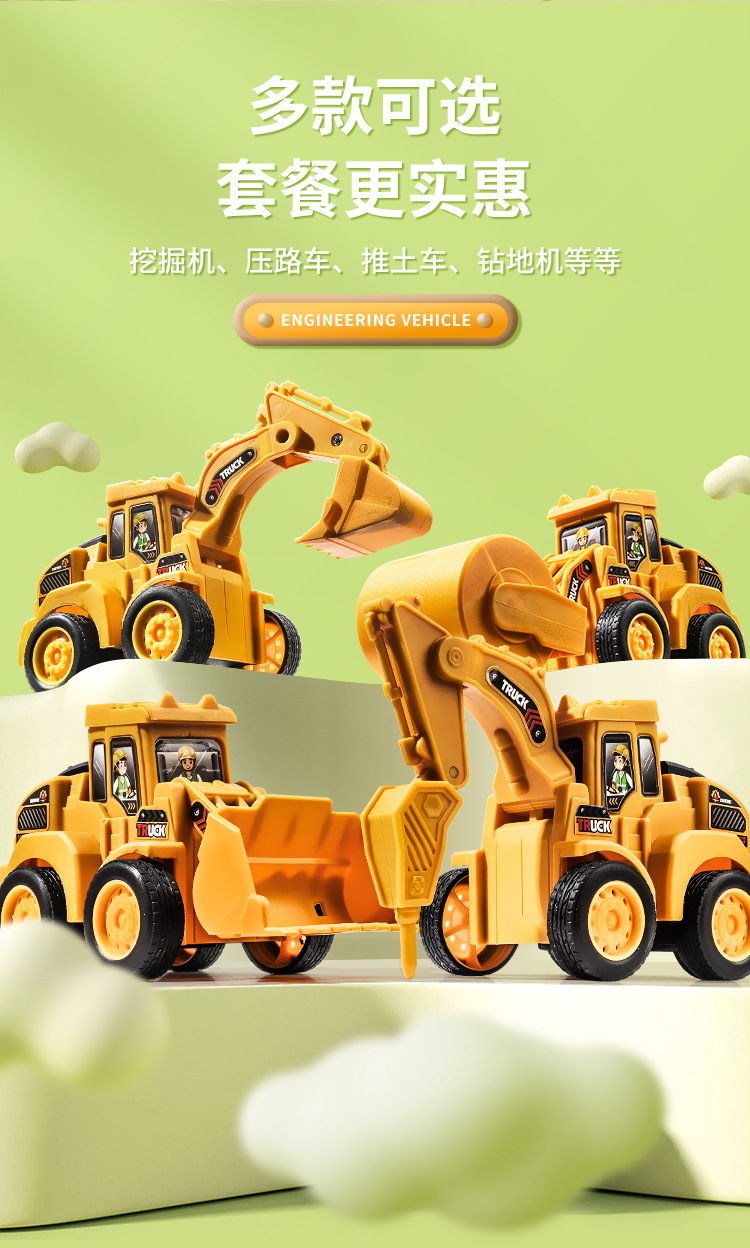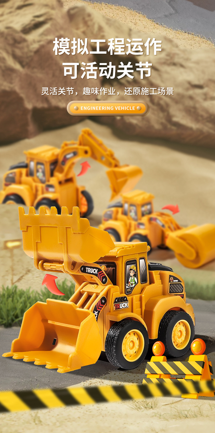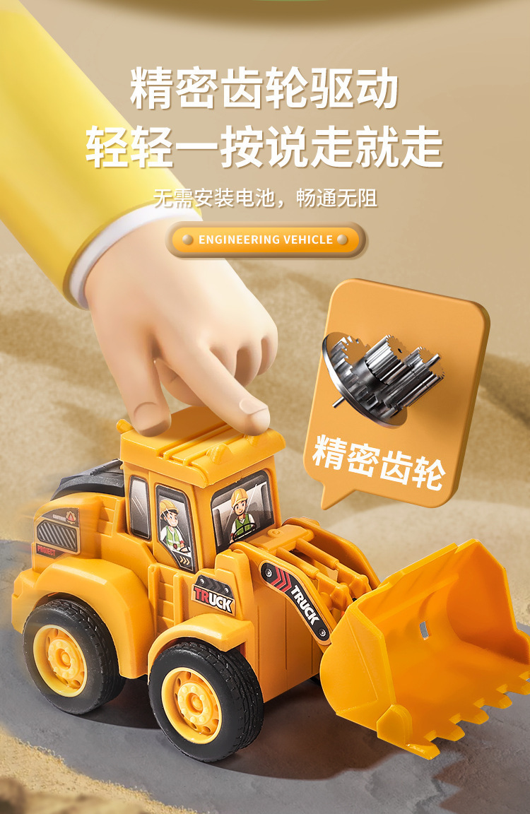 按压即走儿童惯性车回力玩具工程车挖掘机宝宝益智玩具小汽车批发
