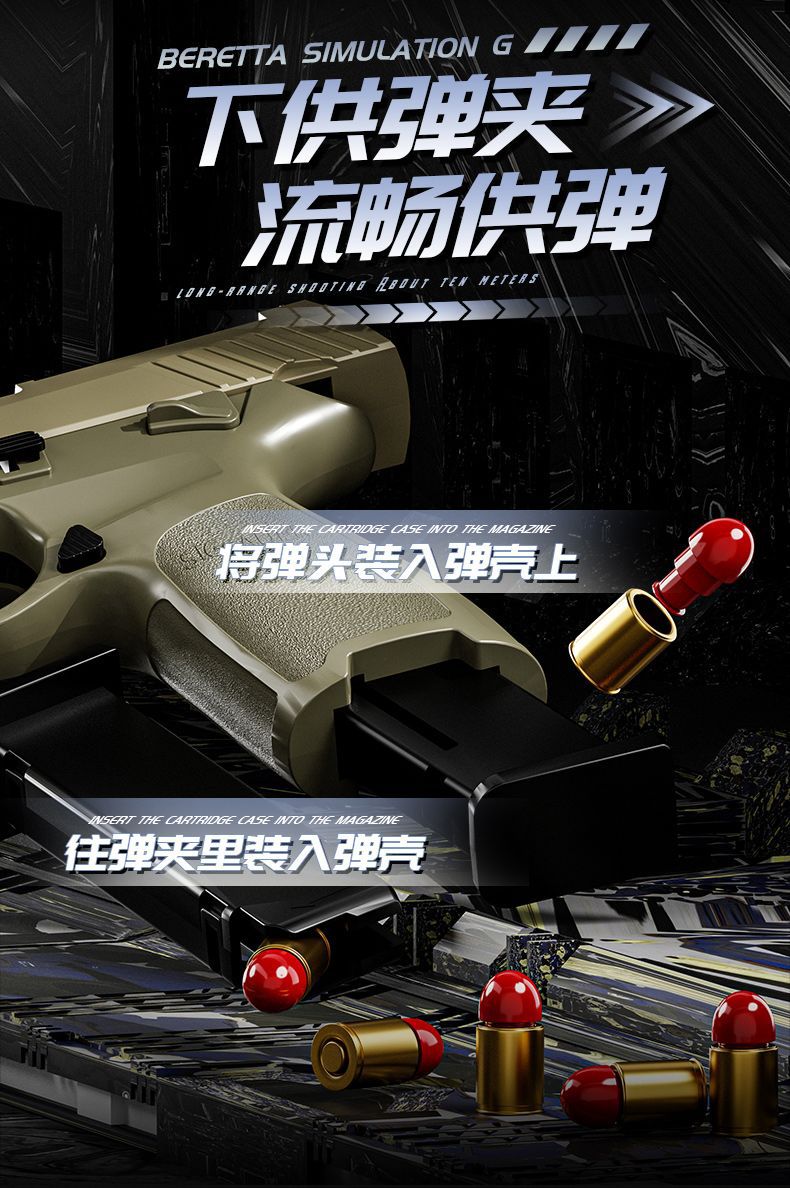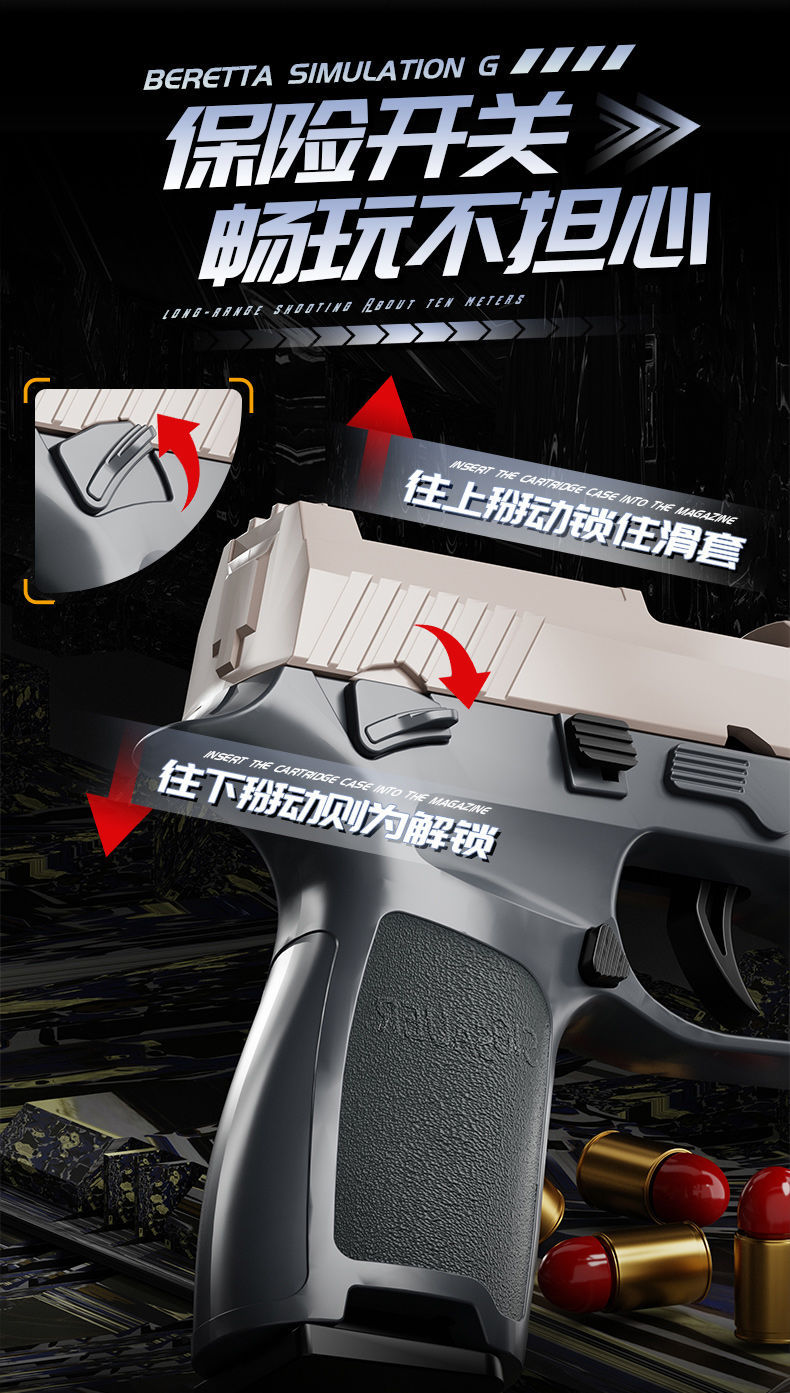 1911连发抛壳玩具枪P320伯莱塔92反吹格洛克软弹仿真手枪儿童男孩
