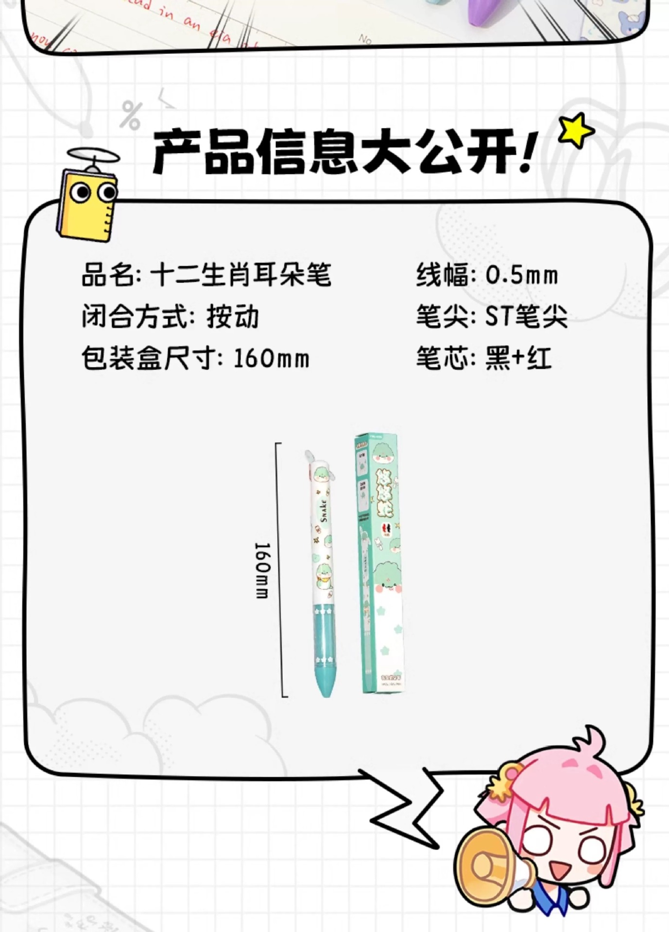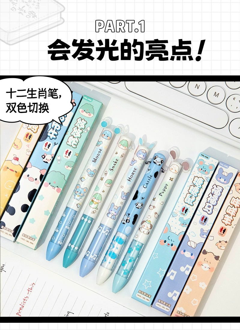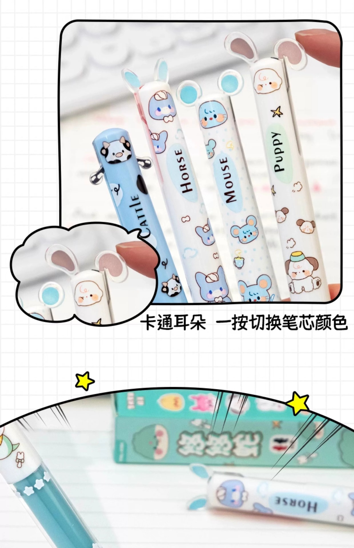 卡通按动中性笔架装 ins可爱风0.5速干双色生肖系列带耳朵中性笔