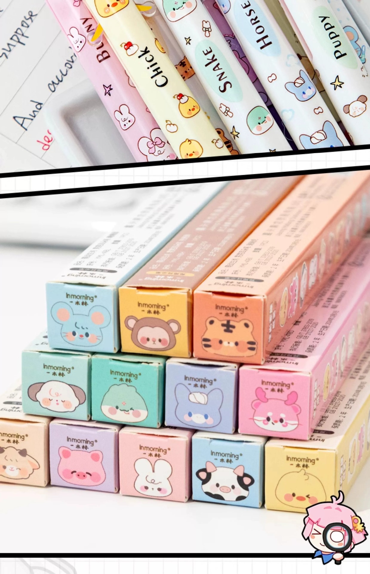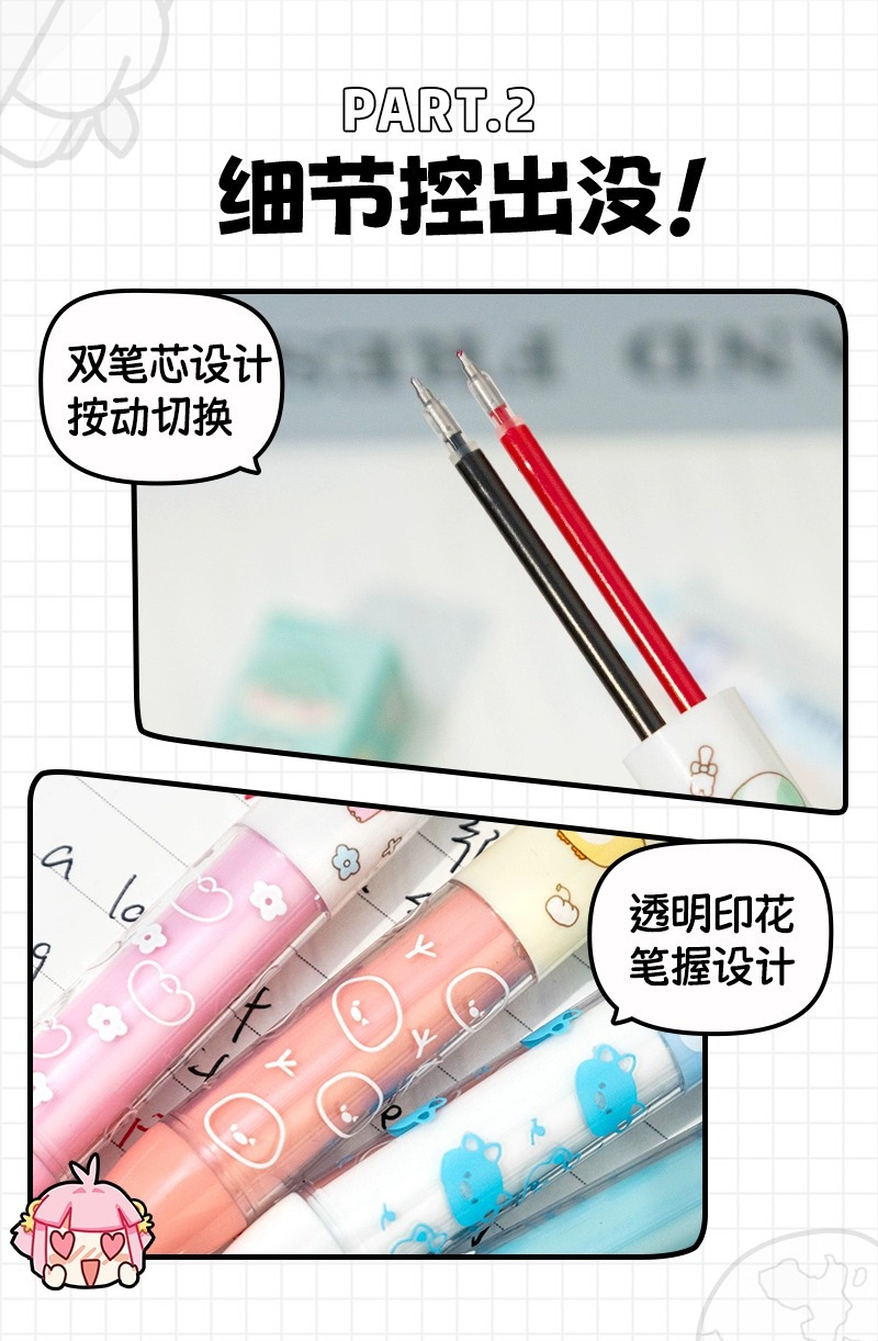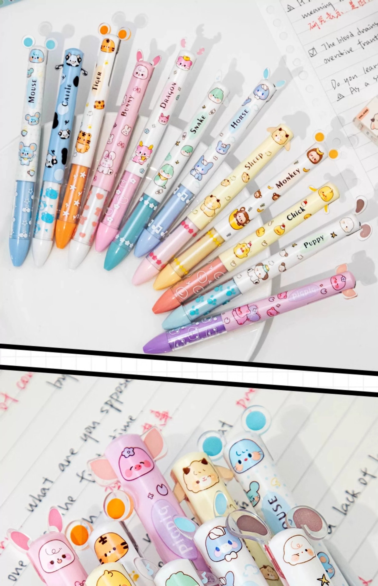 卡通按动中性笔架装 ins可爱风0.5速干双色生肖系列带耳朵中性笔