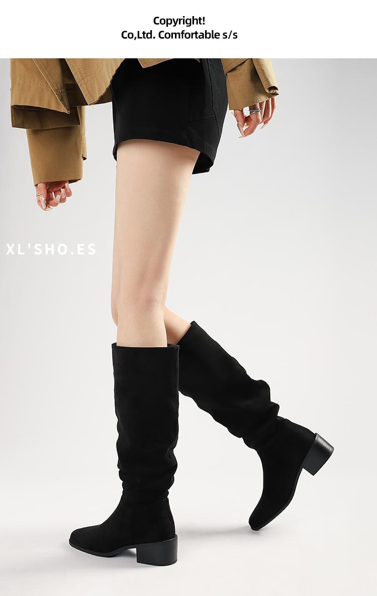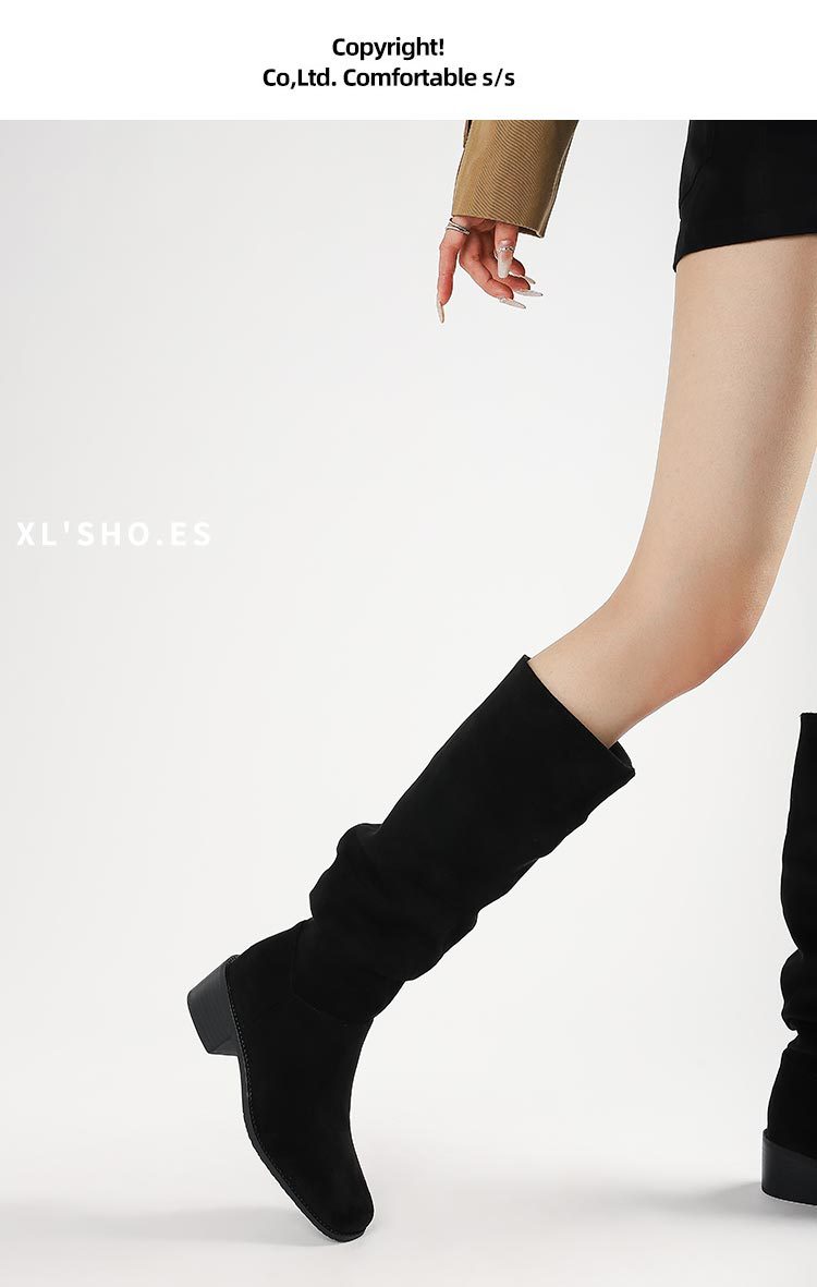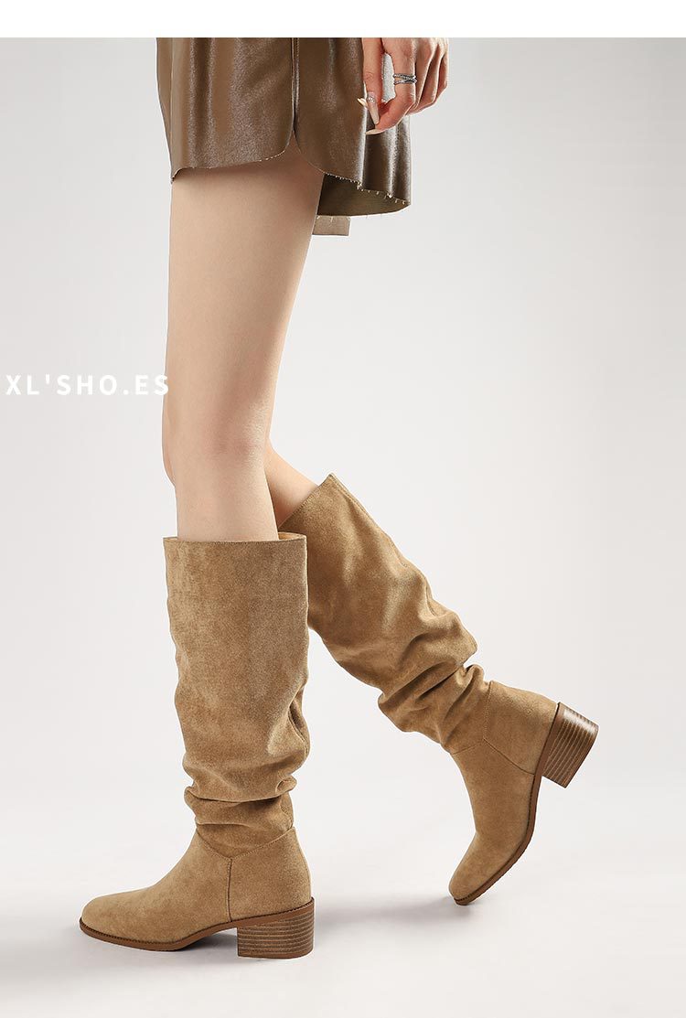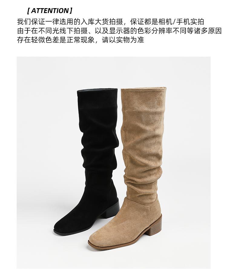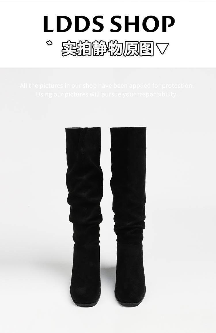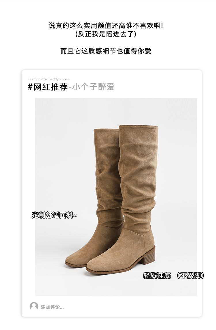 褶皱堆堆靴女胖mm大筒围长筒靴女粗腿厚底骑士靴大码长靴子41到43