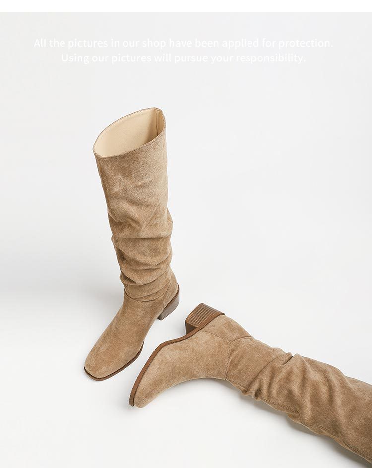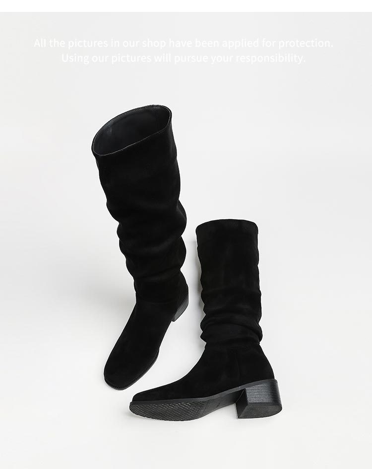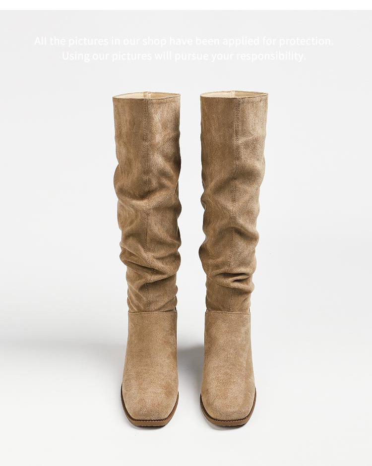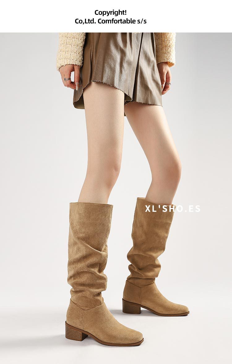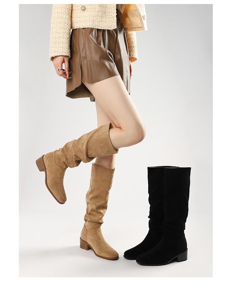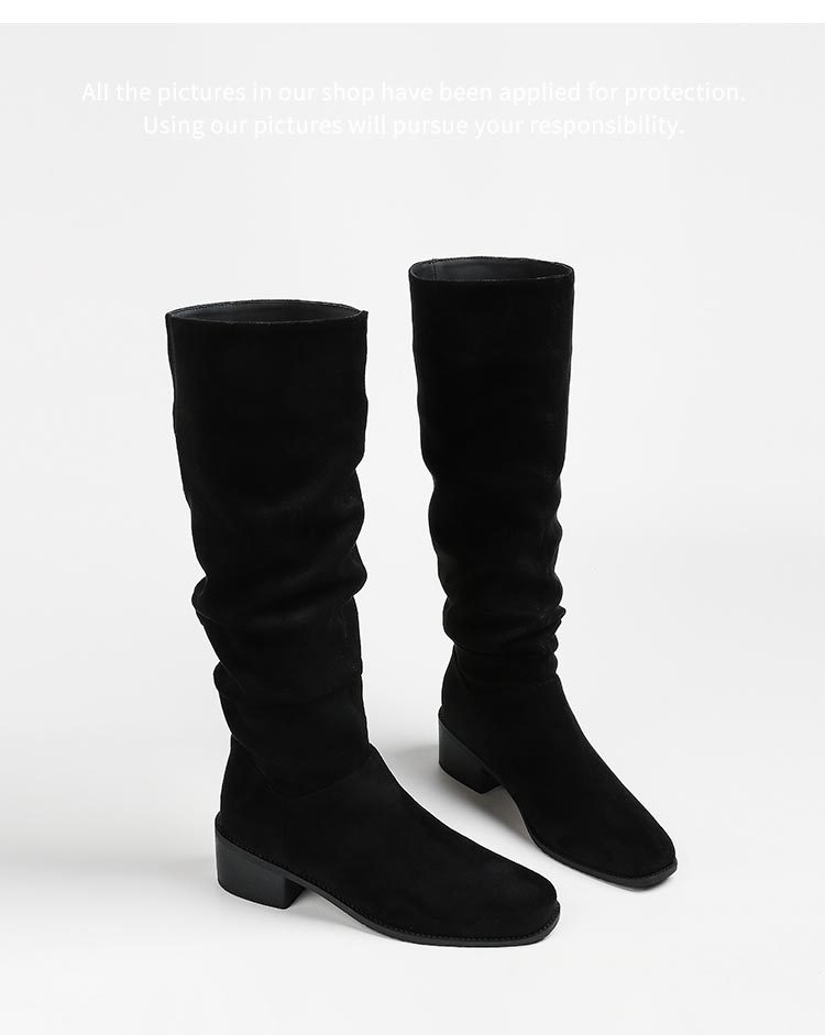 褶皱堆堆靴女胖mm大筒围长筒靴女粗腿厚底骑士靴大码长靴子41到43
