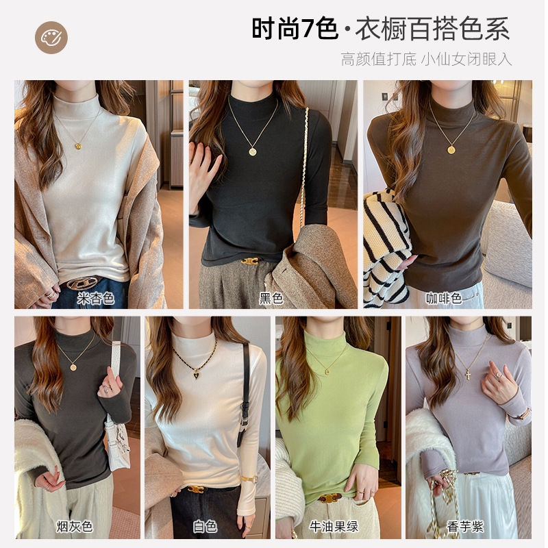 秋冬季微米德绒半高领打底衫女士内搭中领长袖新款可外穿正肩t恤