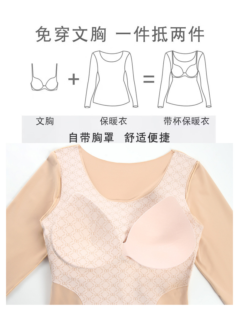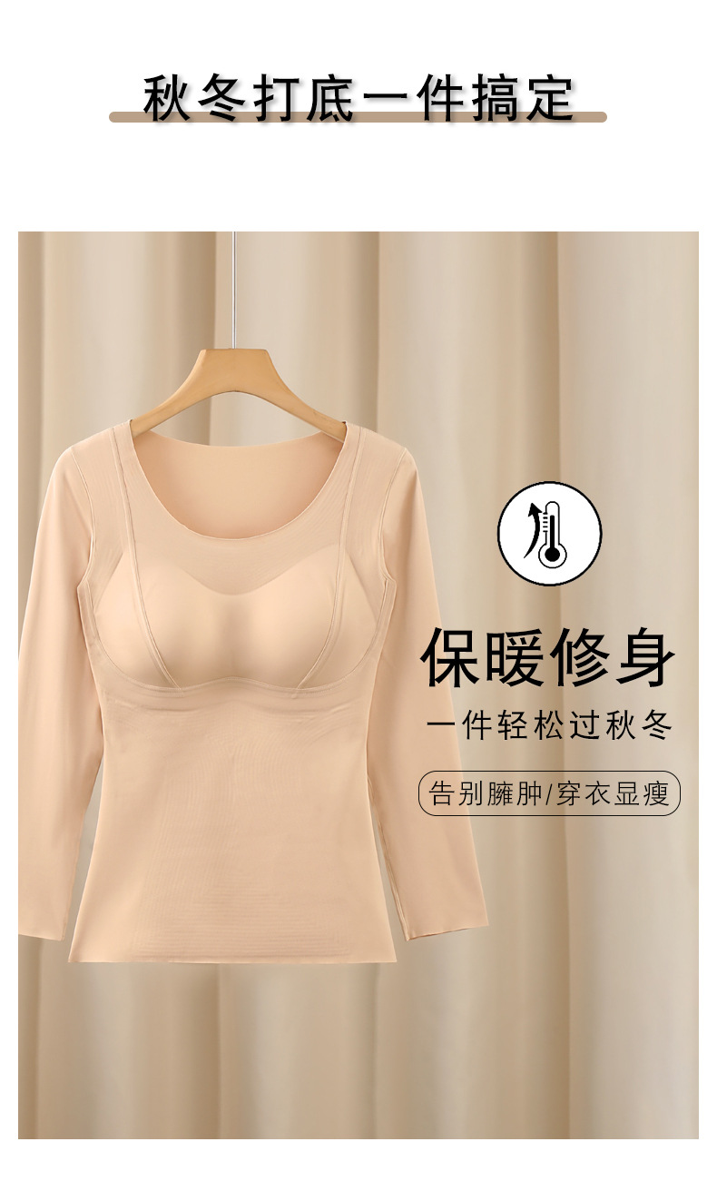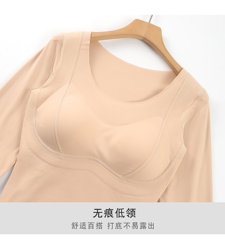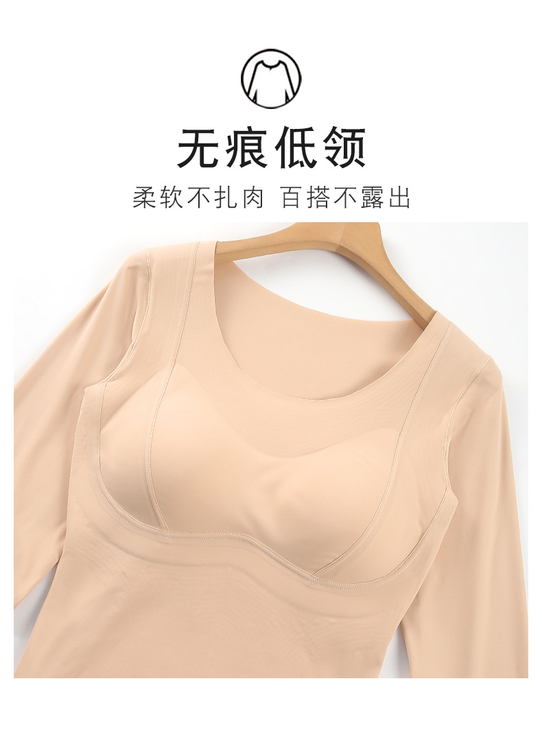 冬季保暖内衣女加绒薄绒带胸垫打底套装大码无痕修身显瘦美体上衣