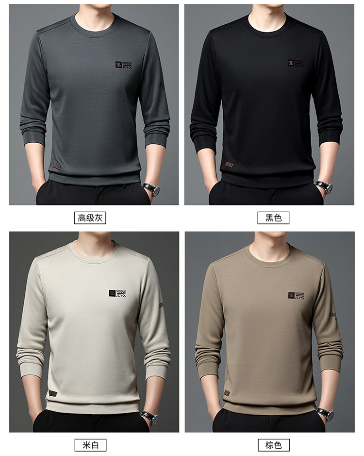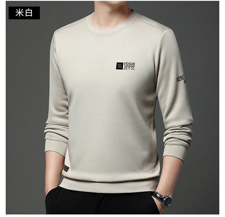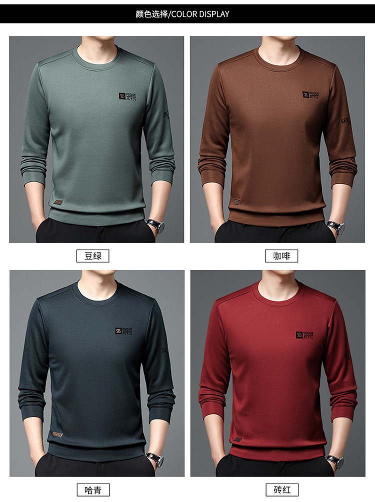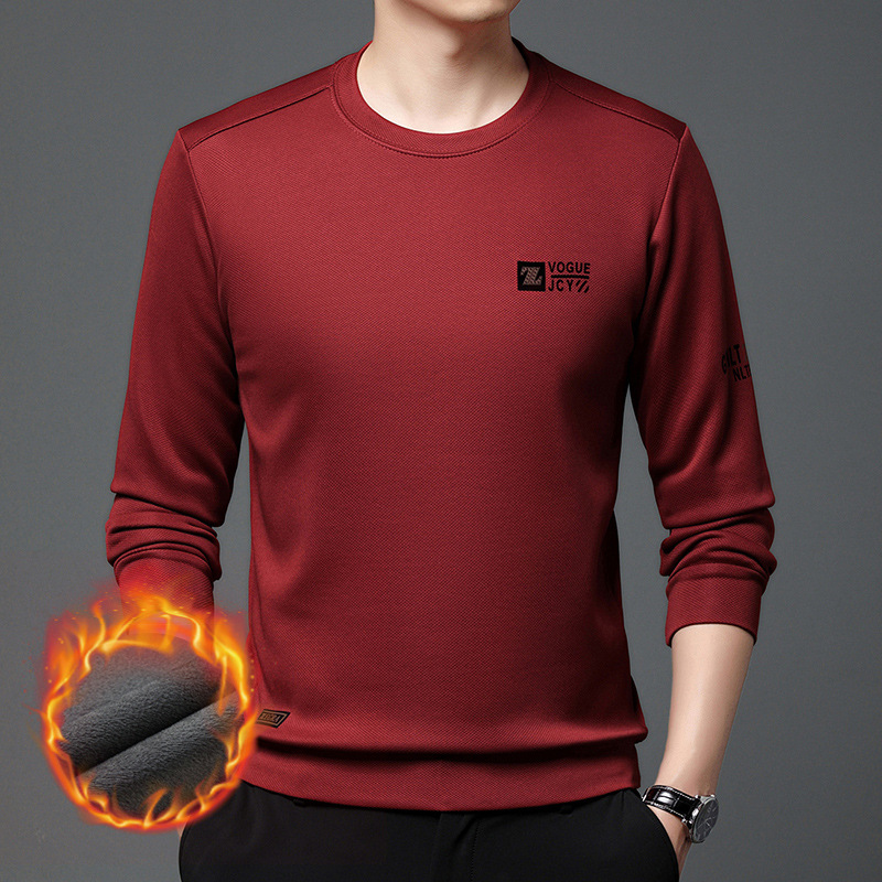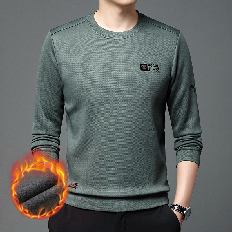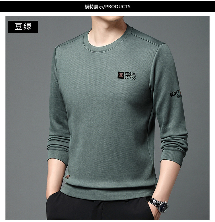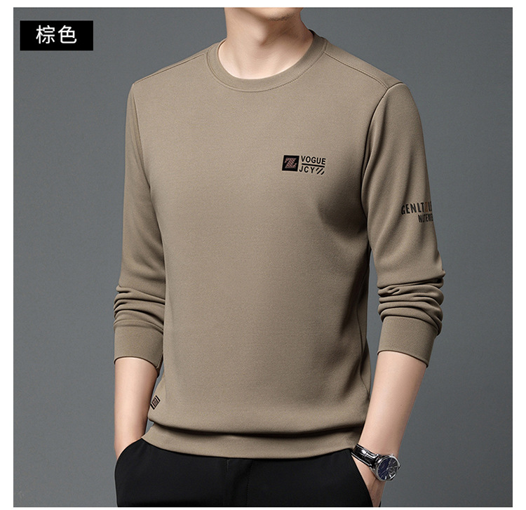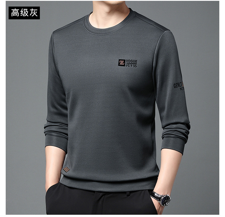 男士长袖加绒体恤衫秋冬季新款简约卫衣休闲百搭打底衫圆领男上衣
