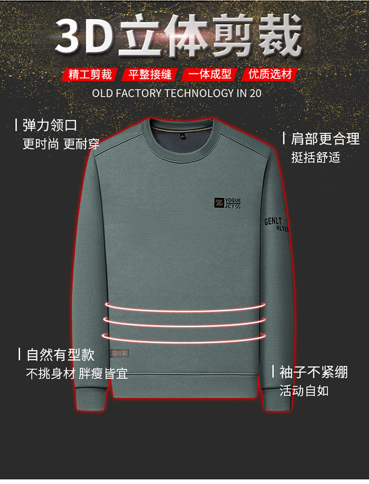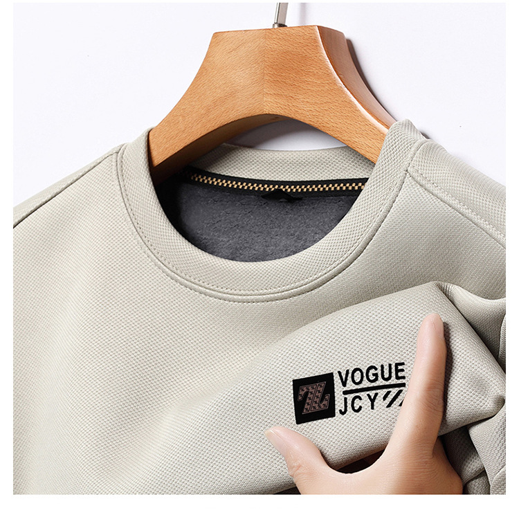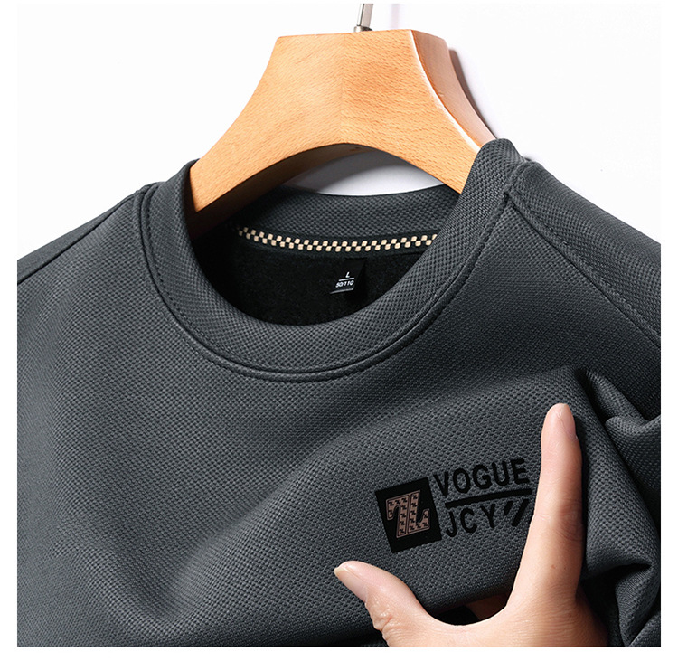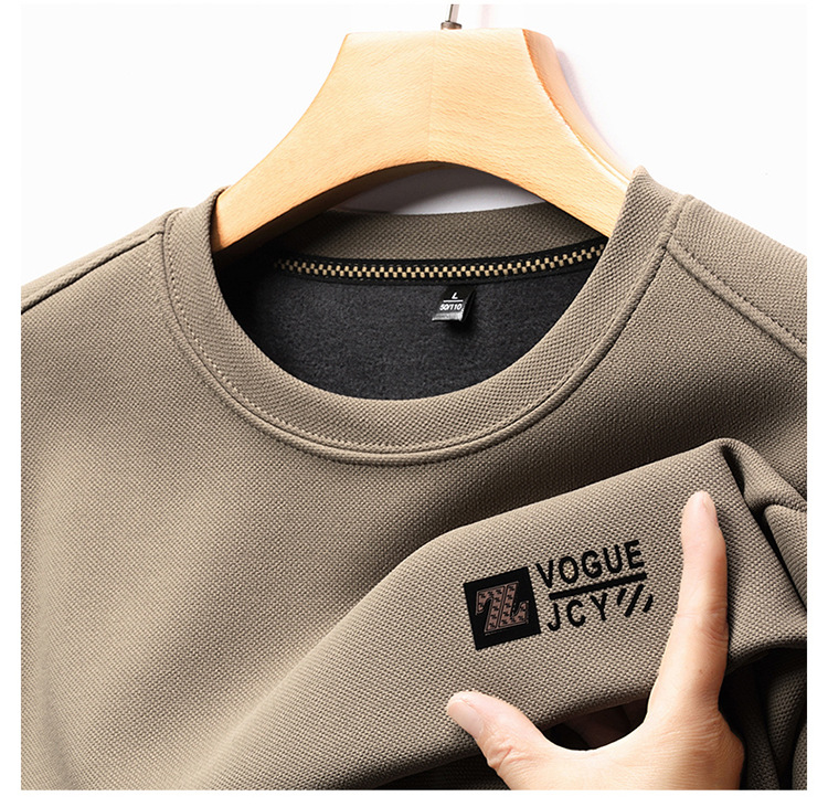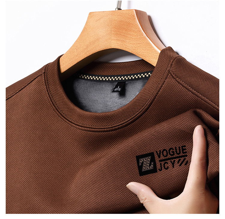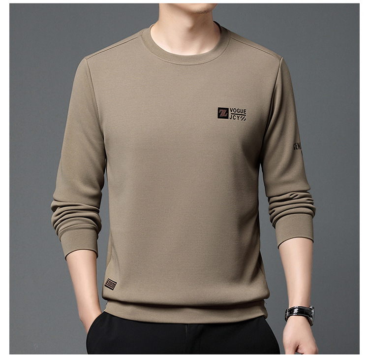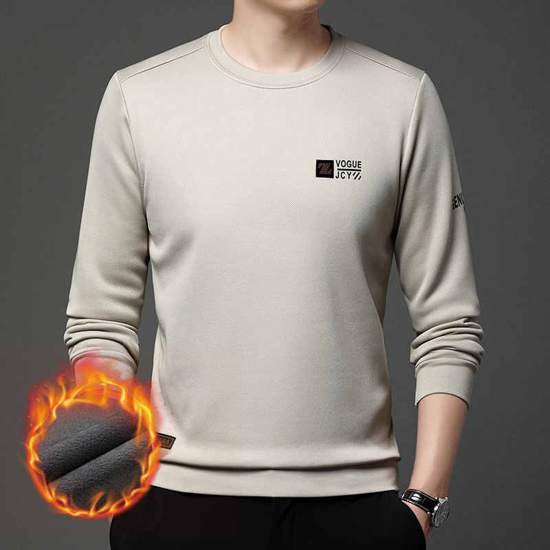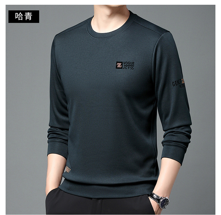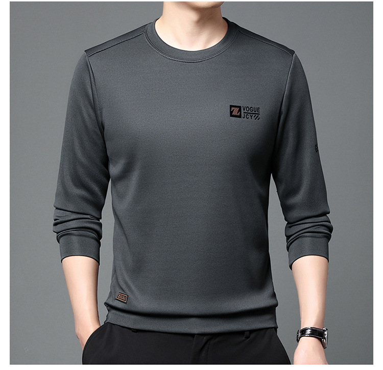 男士长袖加绒体恤衫秋冬季新款简约卫衣休闲百搭打底衫圆领男上衣