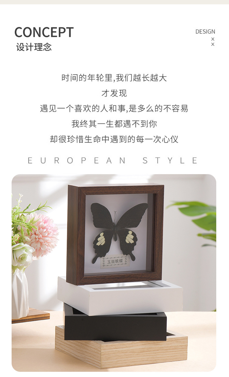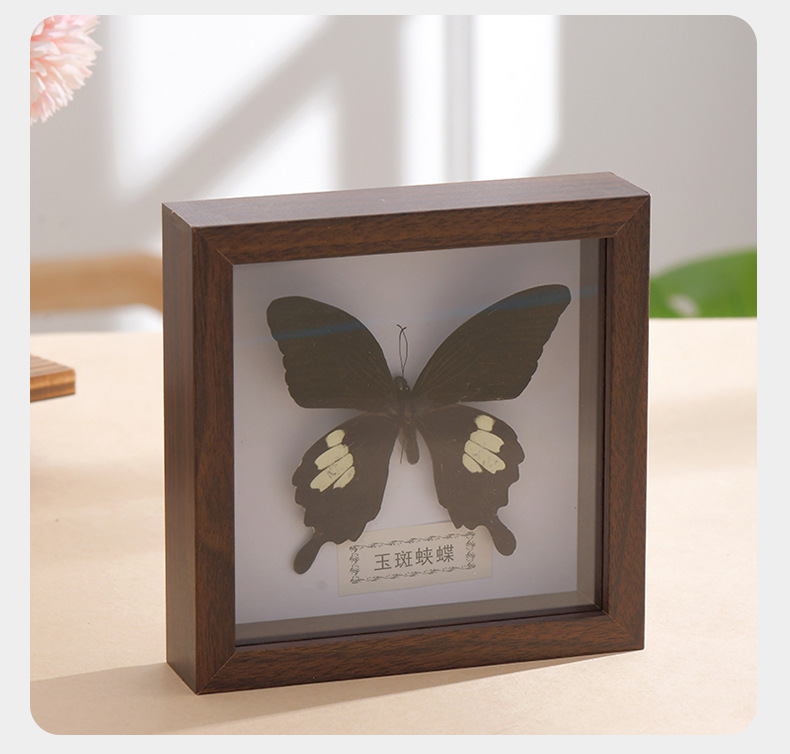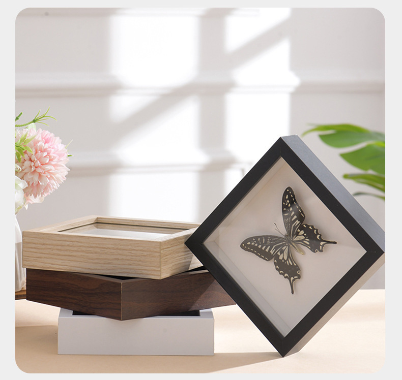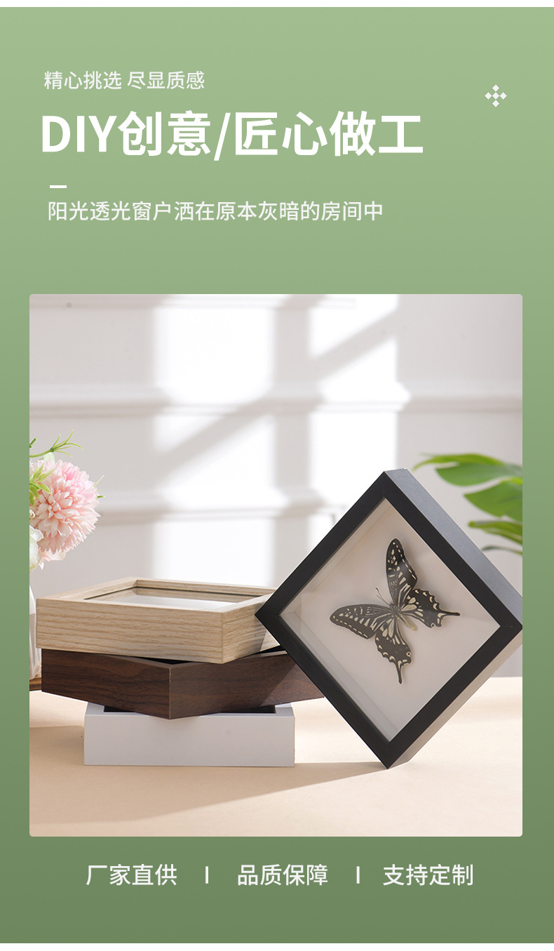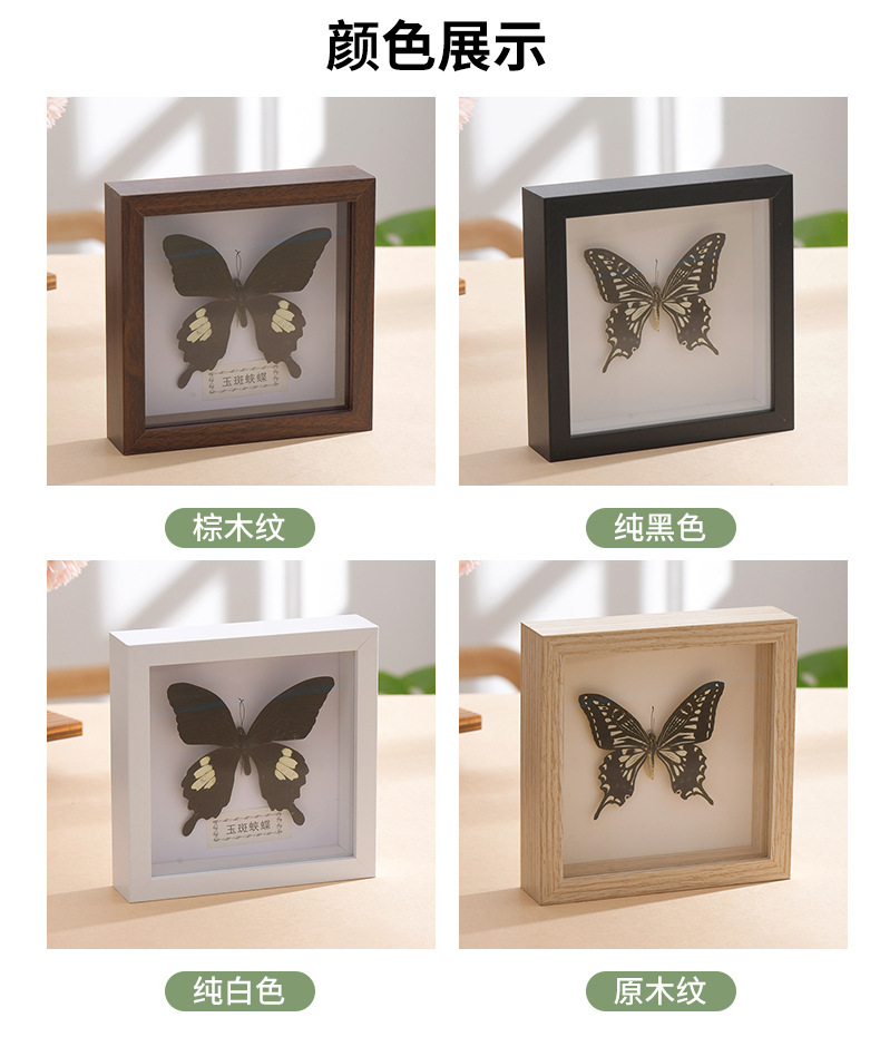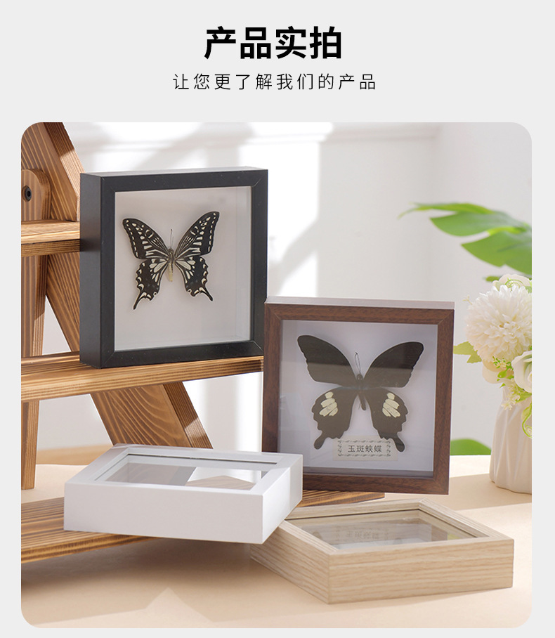 蝴蝶标本相框摆台实木立体中空2CM手工diy衍纸立体标本相框摆件