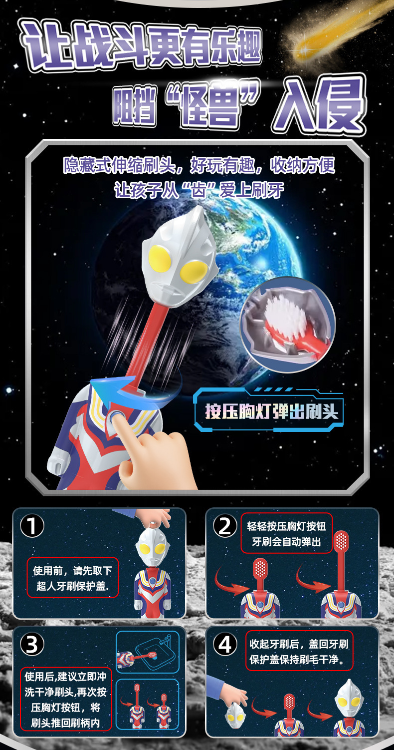 【抖音同款】奥特曼牙刷超弹乐儿童牙刷超细软毛3-6岁小学生男孩