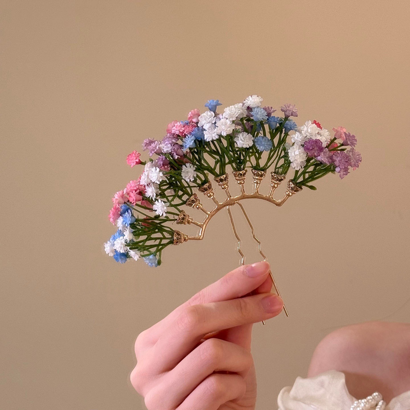 刘亦菲晚宴同款发饰满天星仿真花头饰发夹古堡公主油画感礼服头花
