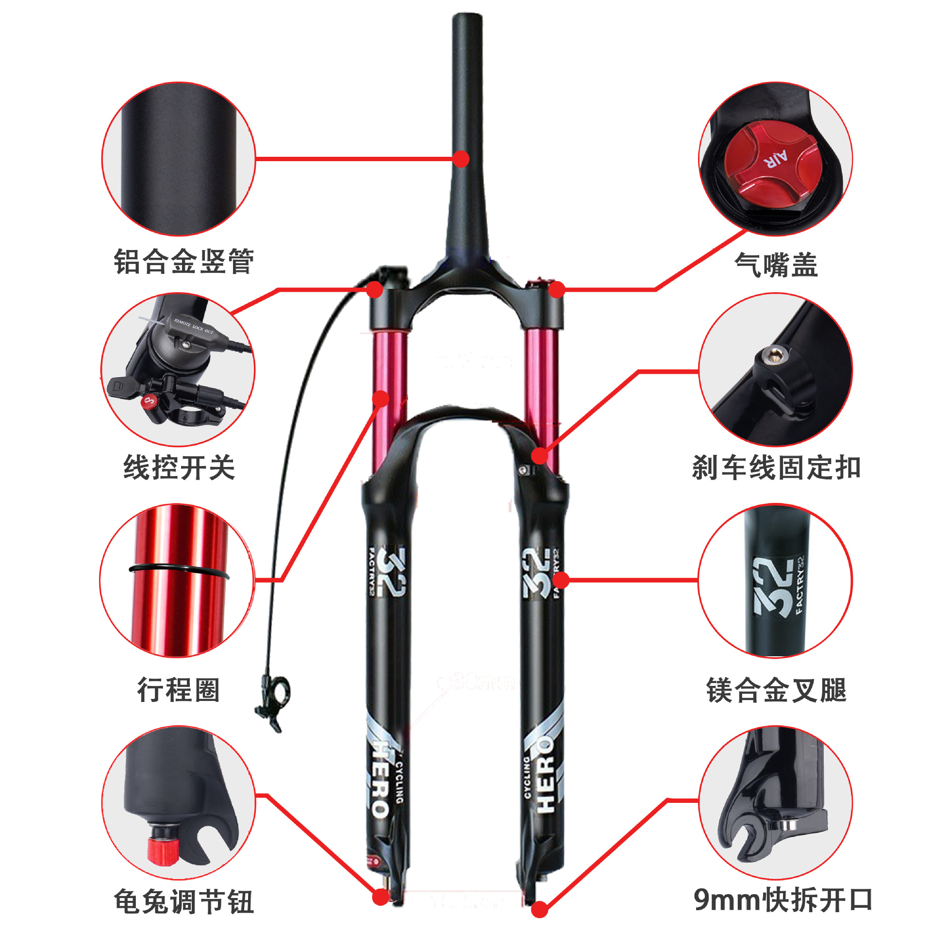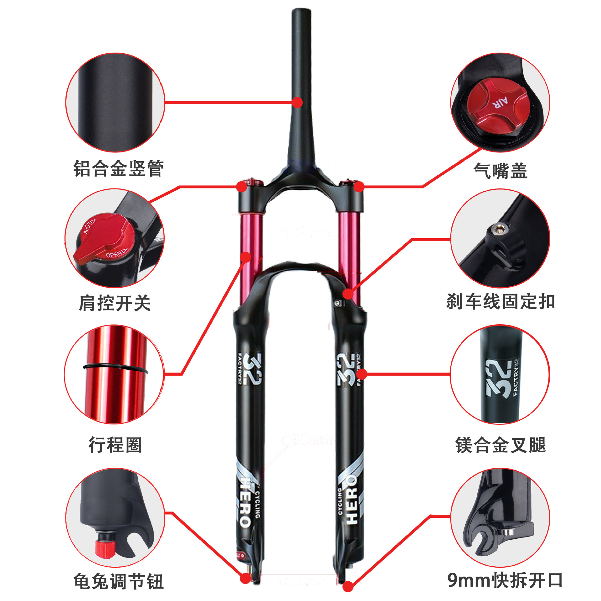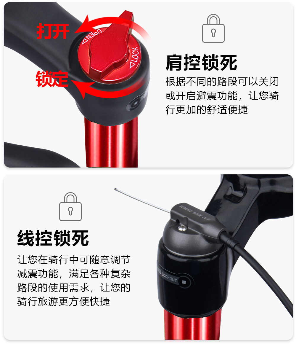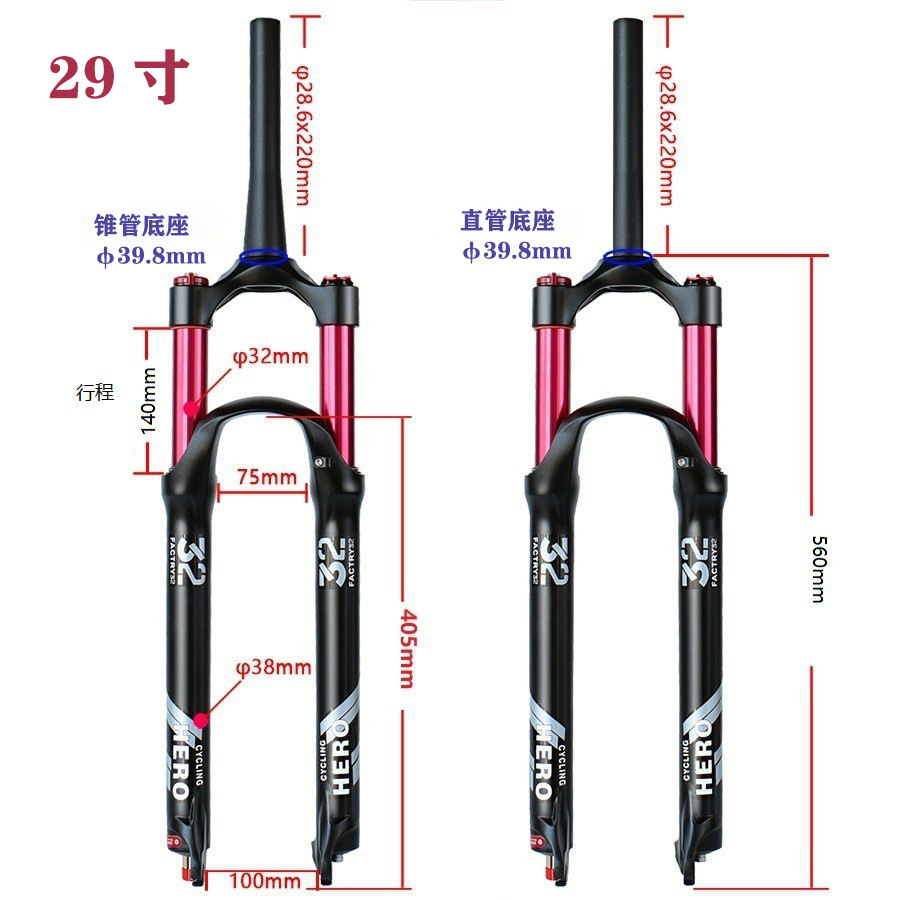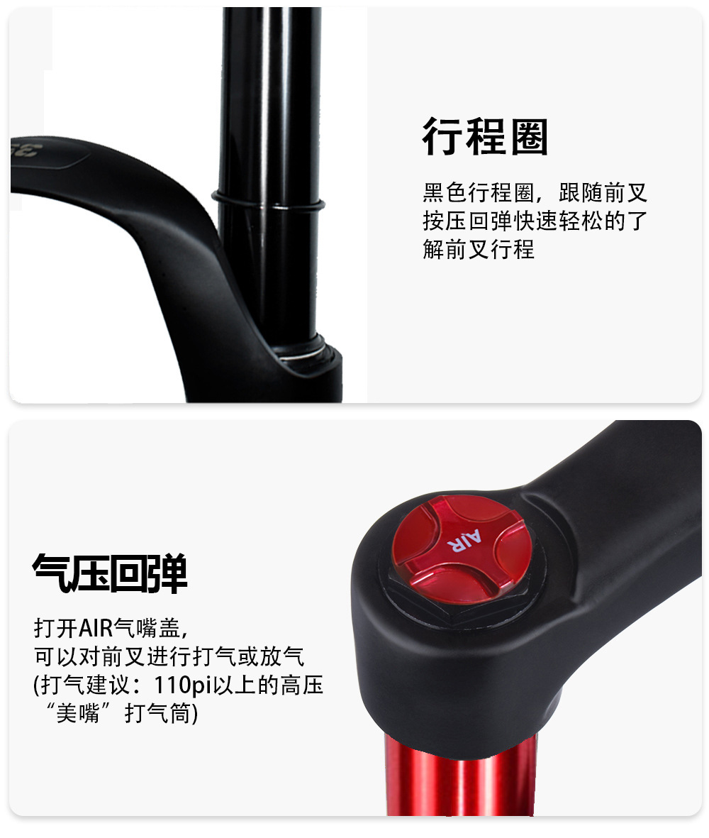 山地车气压前叉140MM行程镁合金阻尼26 27.5 29寸自行车避震前叉
