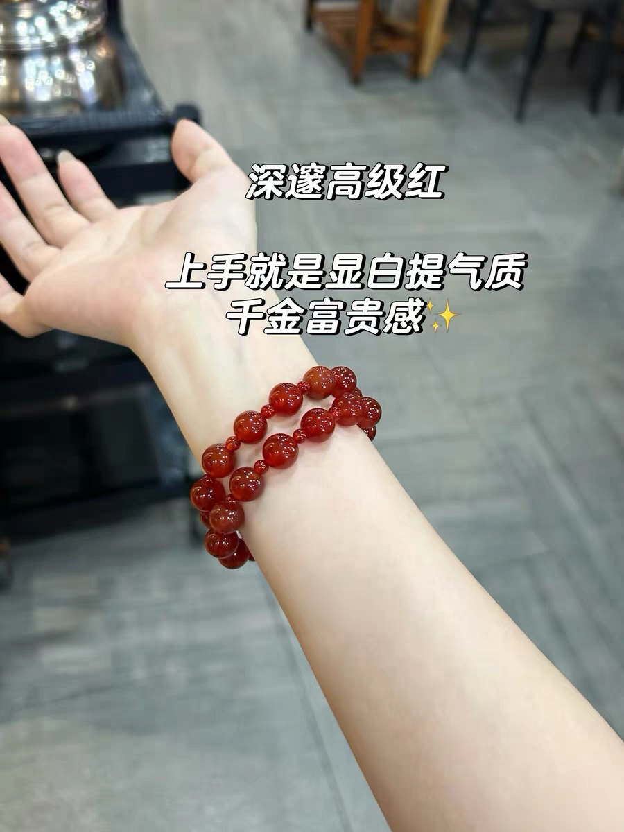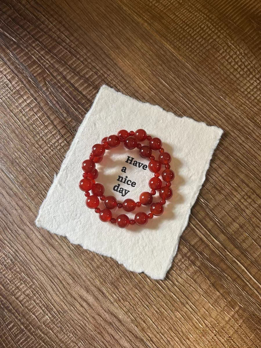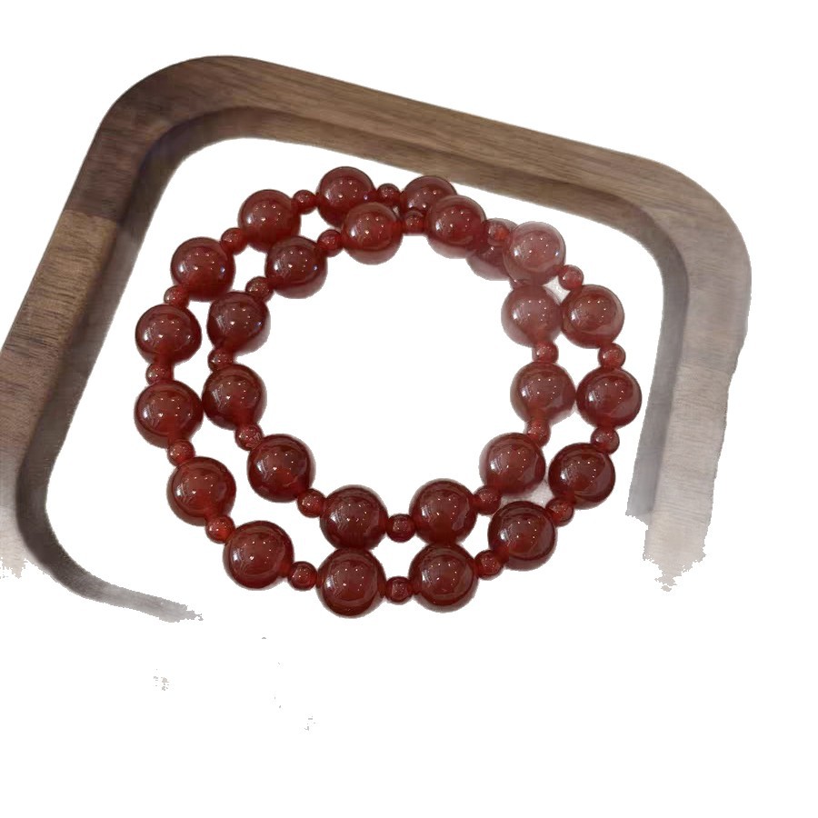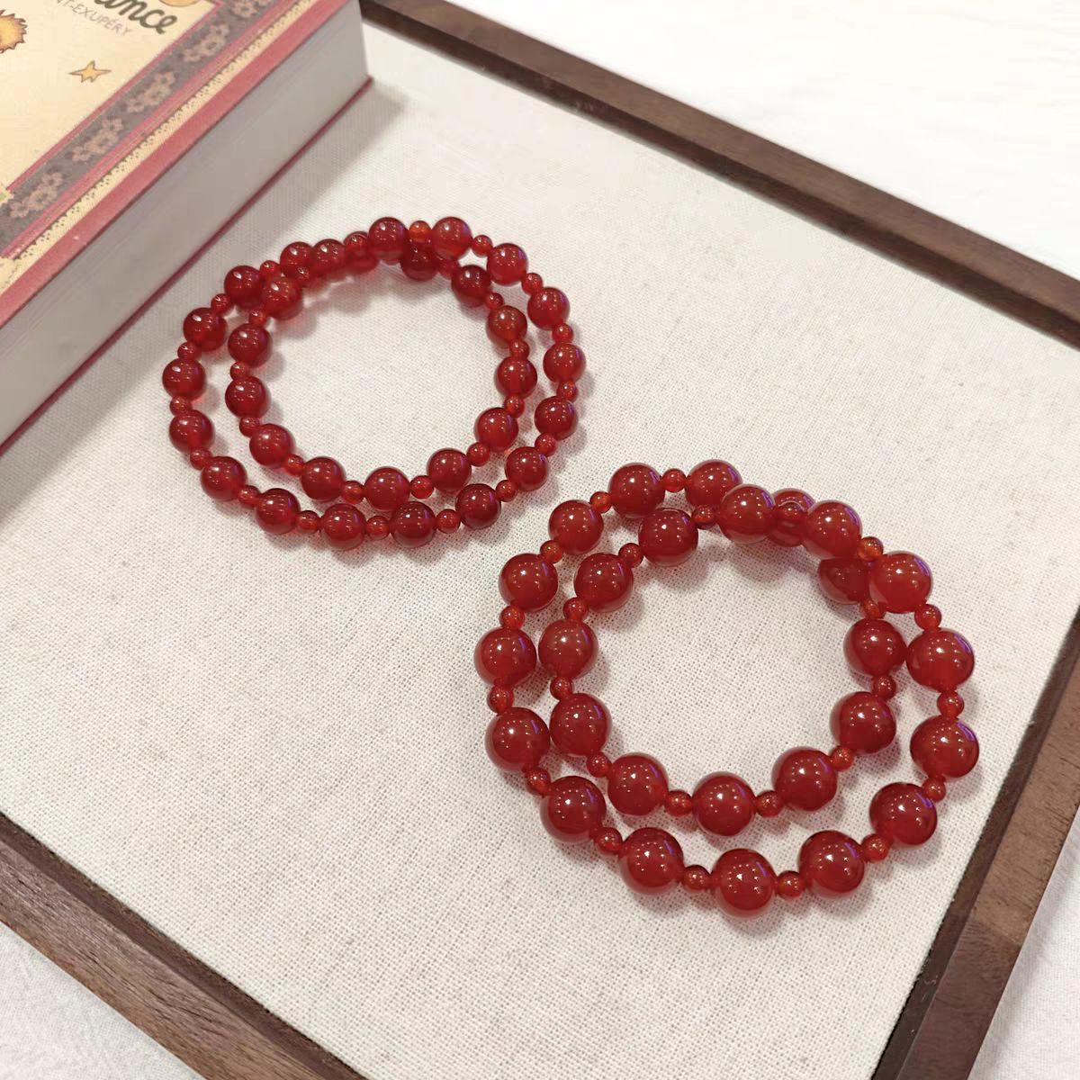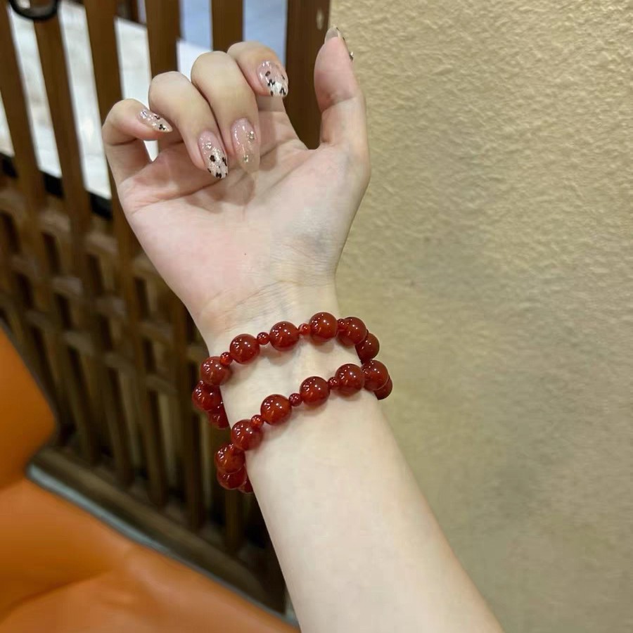 晶德珠宝 许我耀眼赵露思同款7A级红玛瑙双圈手链复古本命年手串