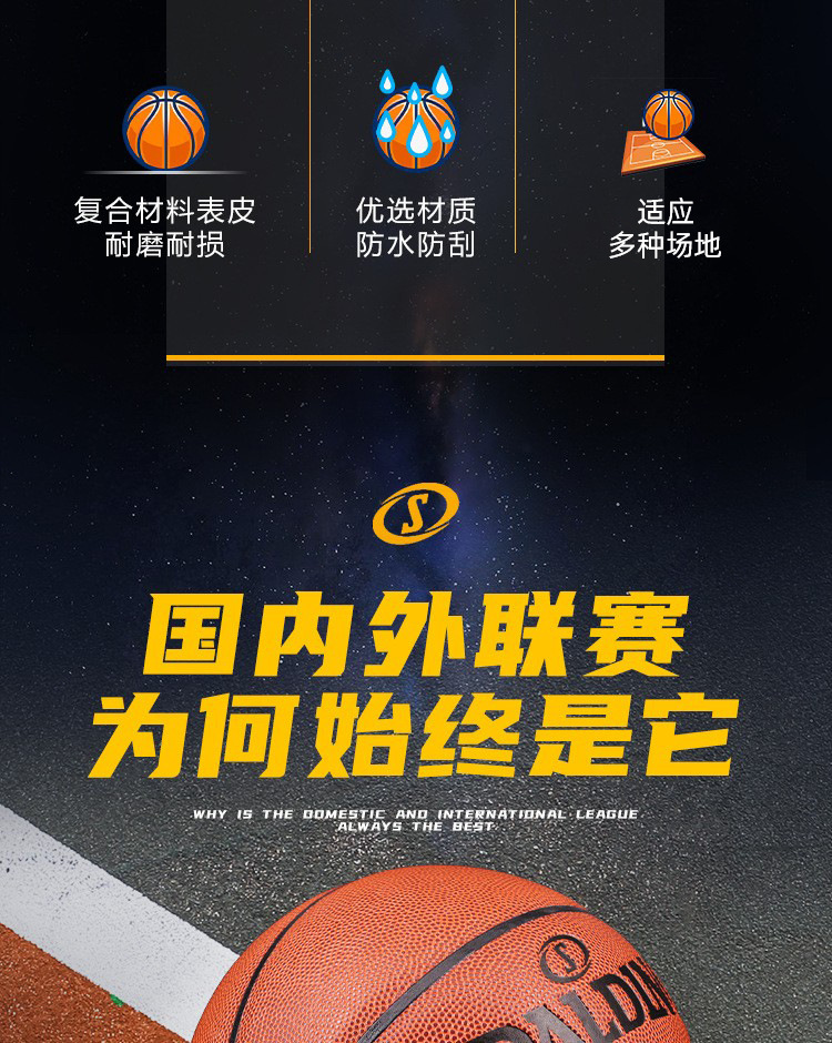 SPALDING斯伯丁74-414PU室内外标准七号赛事成人篮球76-884Y
