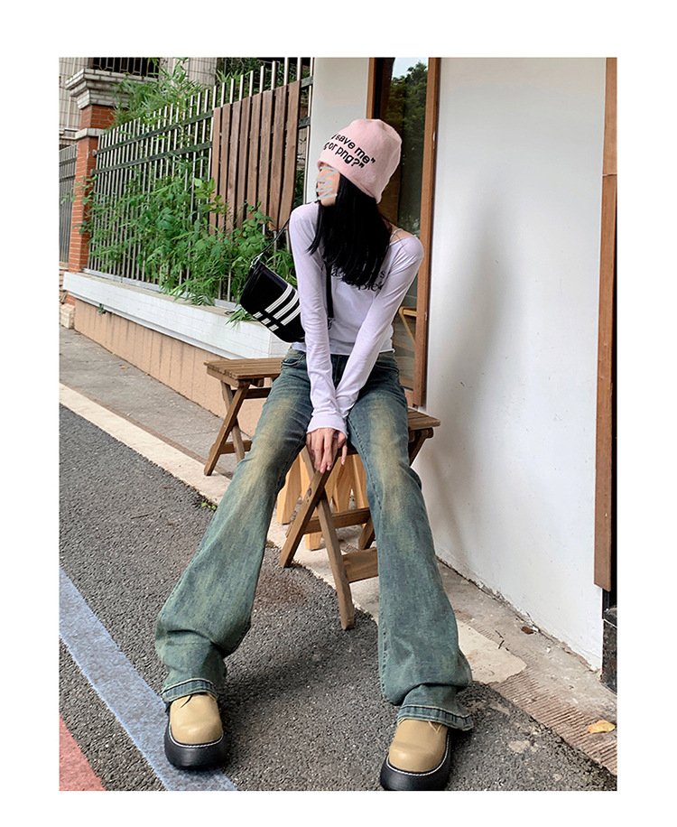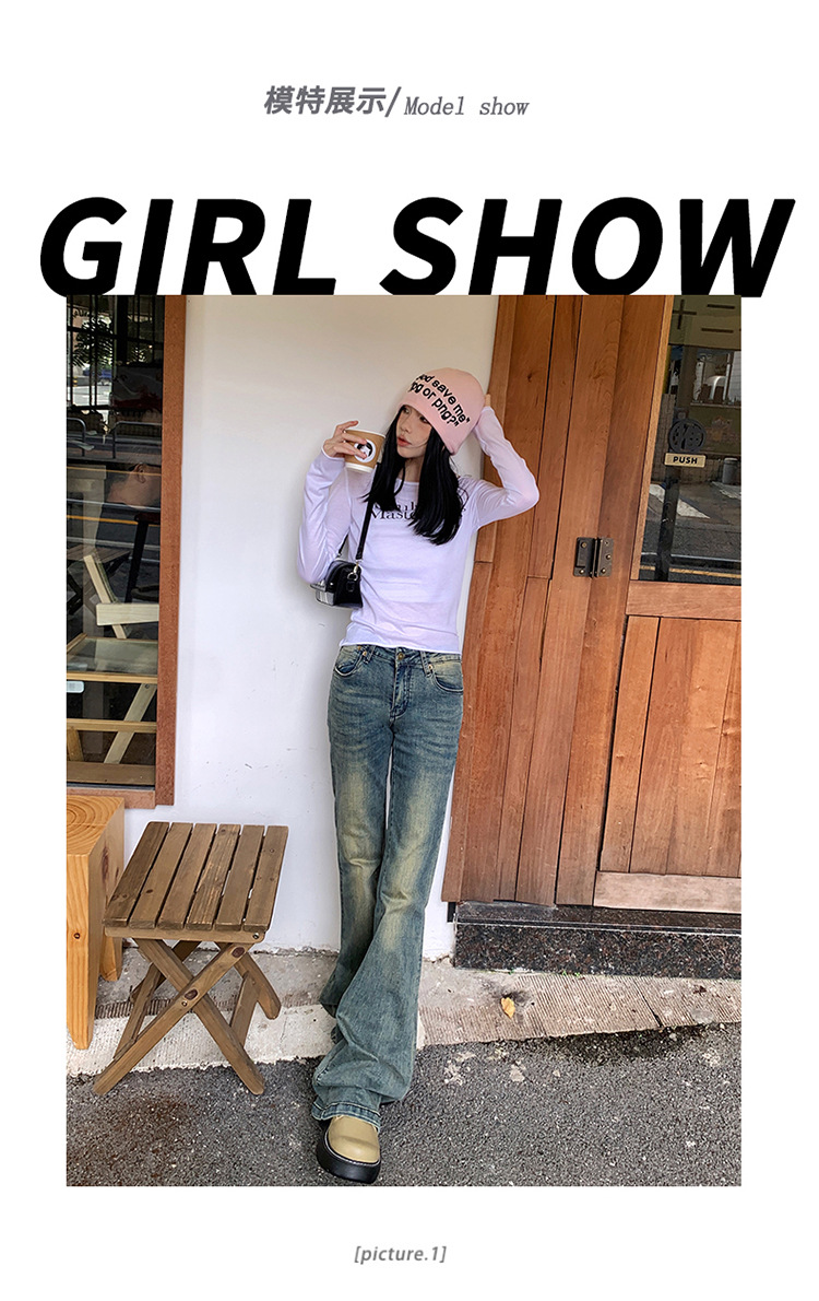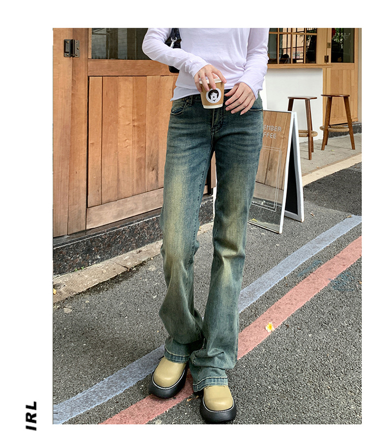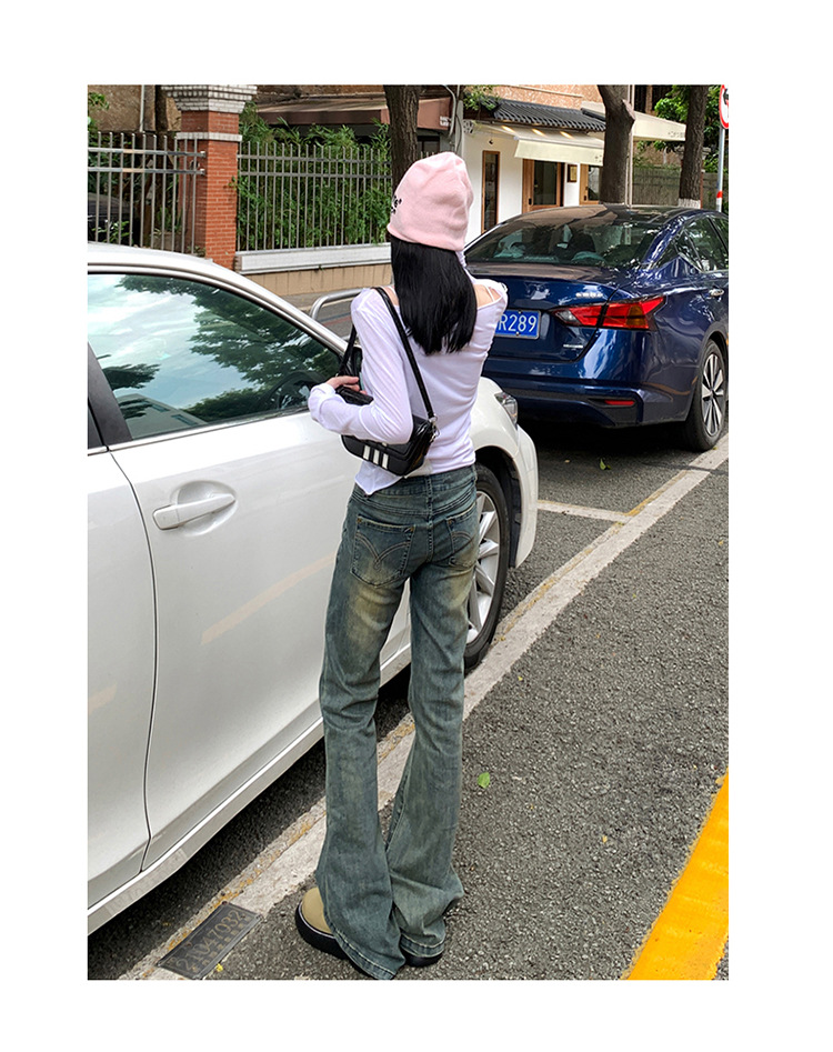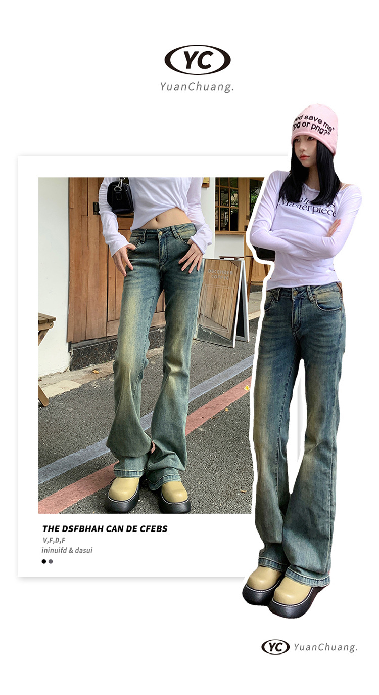 美式辣妹做旧低腰微喇裤女2025年新款修身显瘦百搭垂感喇叭牛仔裤